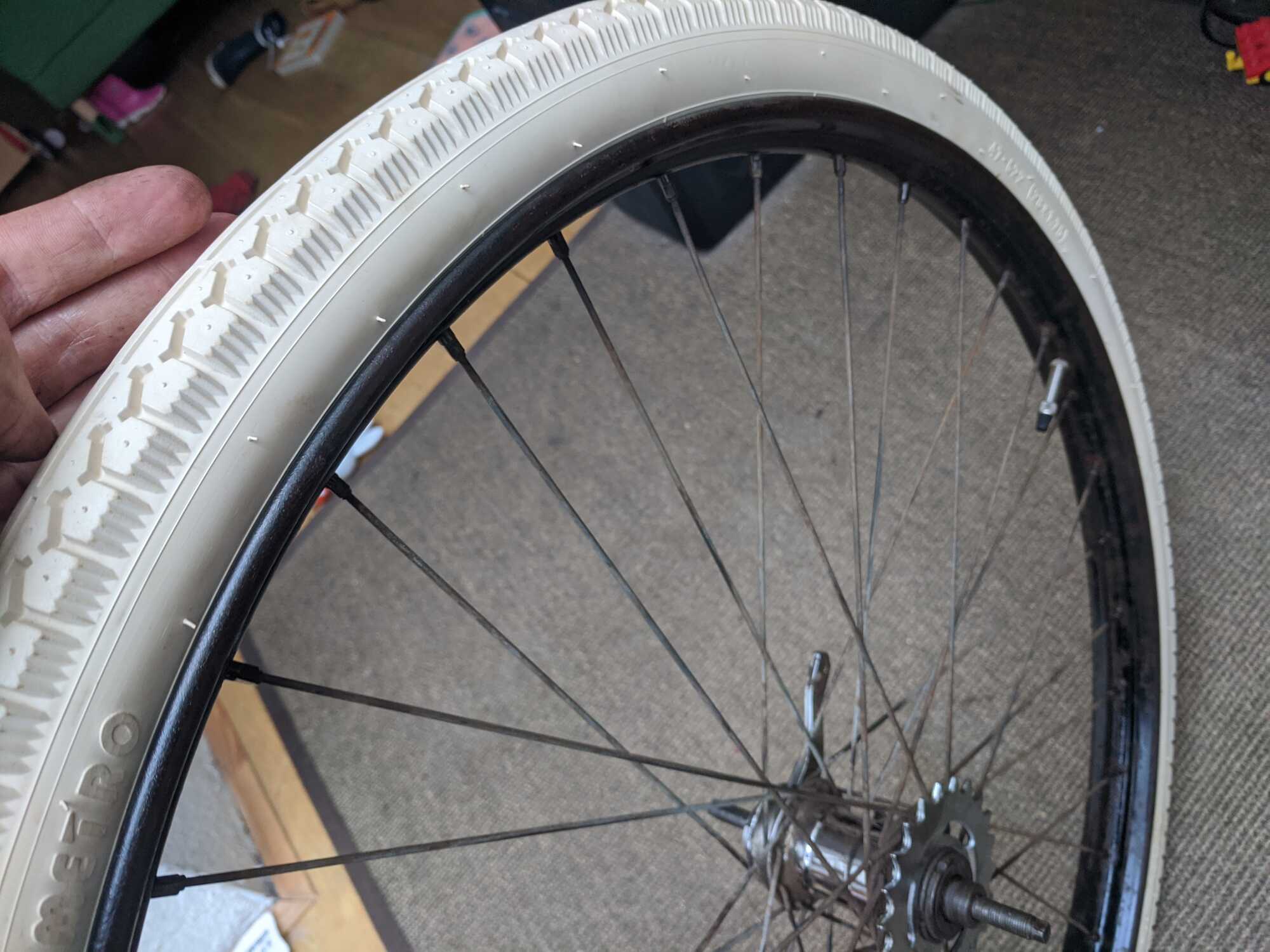 Hele korte update. Maar langzaamaan gaan we met de wielen de goede kant op. Voornaaf moet vervangen worden, maar de achternaaf was te redden.