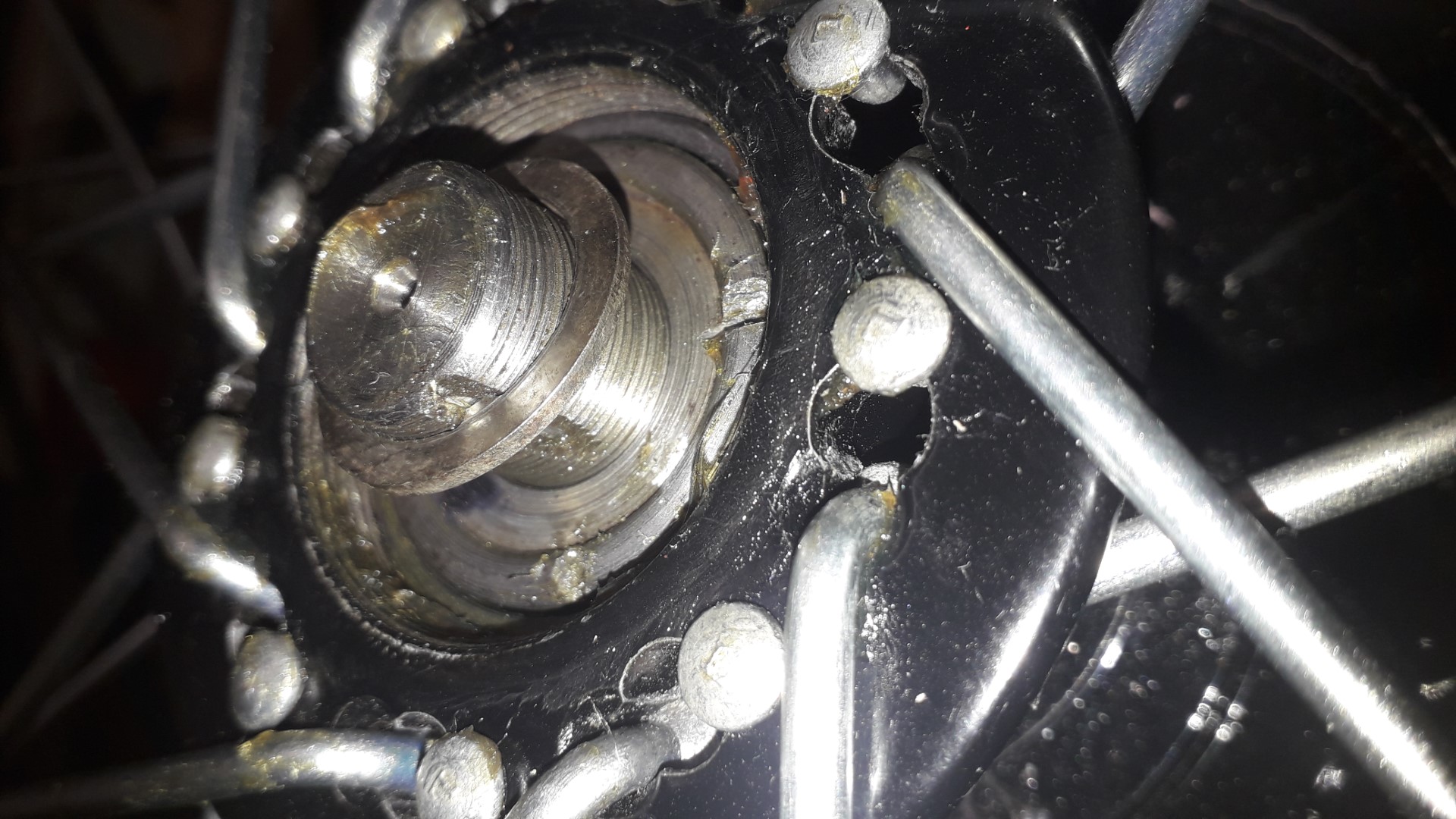 Van 1 wielas heb ik getracht het lager aan de buitenzijde samen te stellen uit 2 verschillende lager delen en daarbij passende kogeltjes te vinden: 3/16 (4.7mm) te groot, 3.96mm te klein en 4,5mm zou kunnen, maar die zijn niet zomaar 1,2 3 te krijgen. Bij Nostalgie Oirschot nog een paar verschillende lagercupjes opgescharreld om daar mee te kunnen stoeien. Ook nog even bij Van Diermen in Lunteren langs geweest. Deze had een lumineus idee. De lagercupjes van een trapas die hij nog had liggen hebben een buitendiameter van 40mm. Er zit echter wel een stootrand aan de buitenomtrek van het cupje, maar die kan ik op de draaibank wel verwijderen. Omdat het een compleet setje is (binnencupje en buitencupje met draad alsmede het bijbehorende lager, hier maar eens mee aan de gang gegaan.