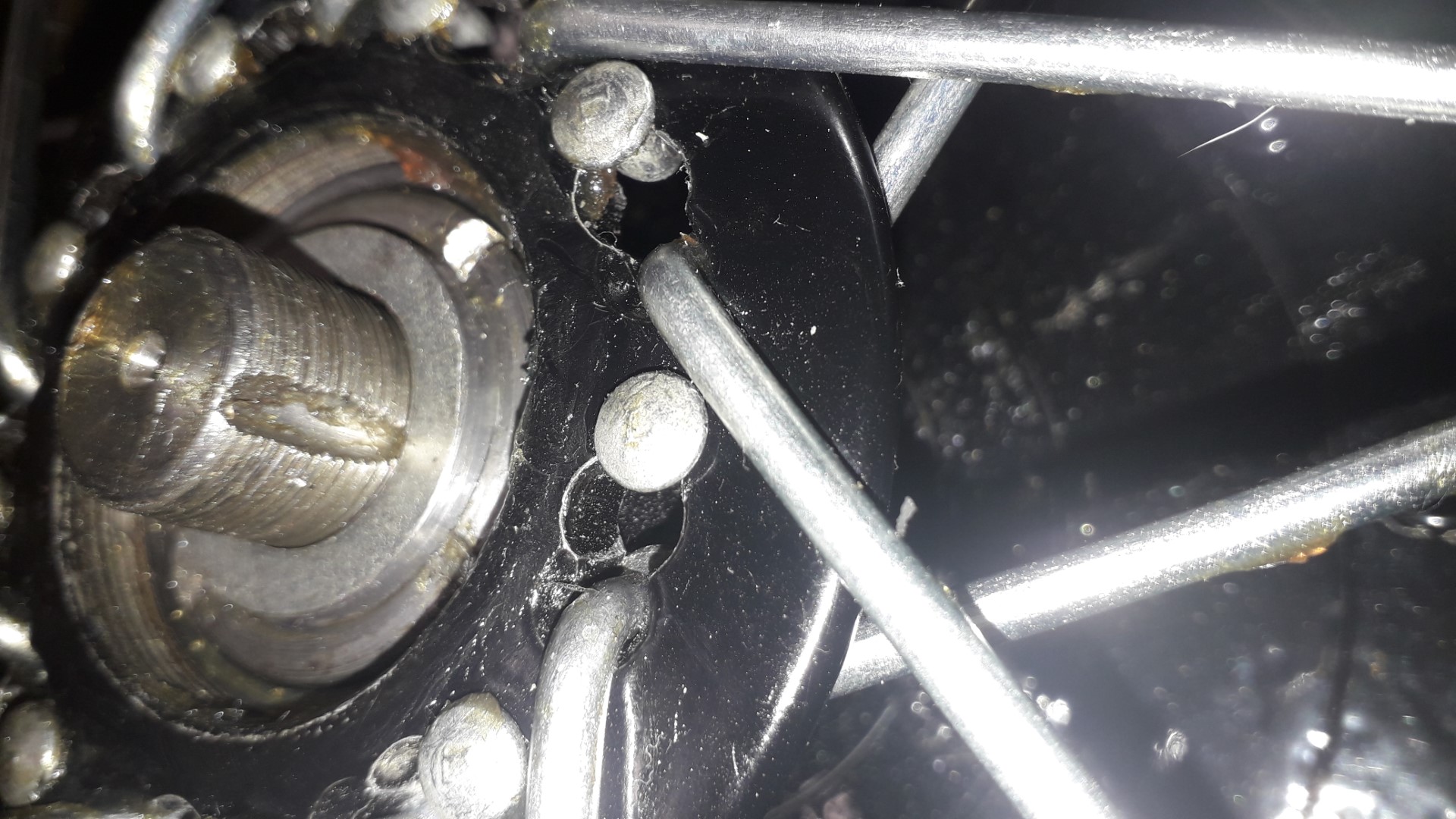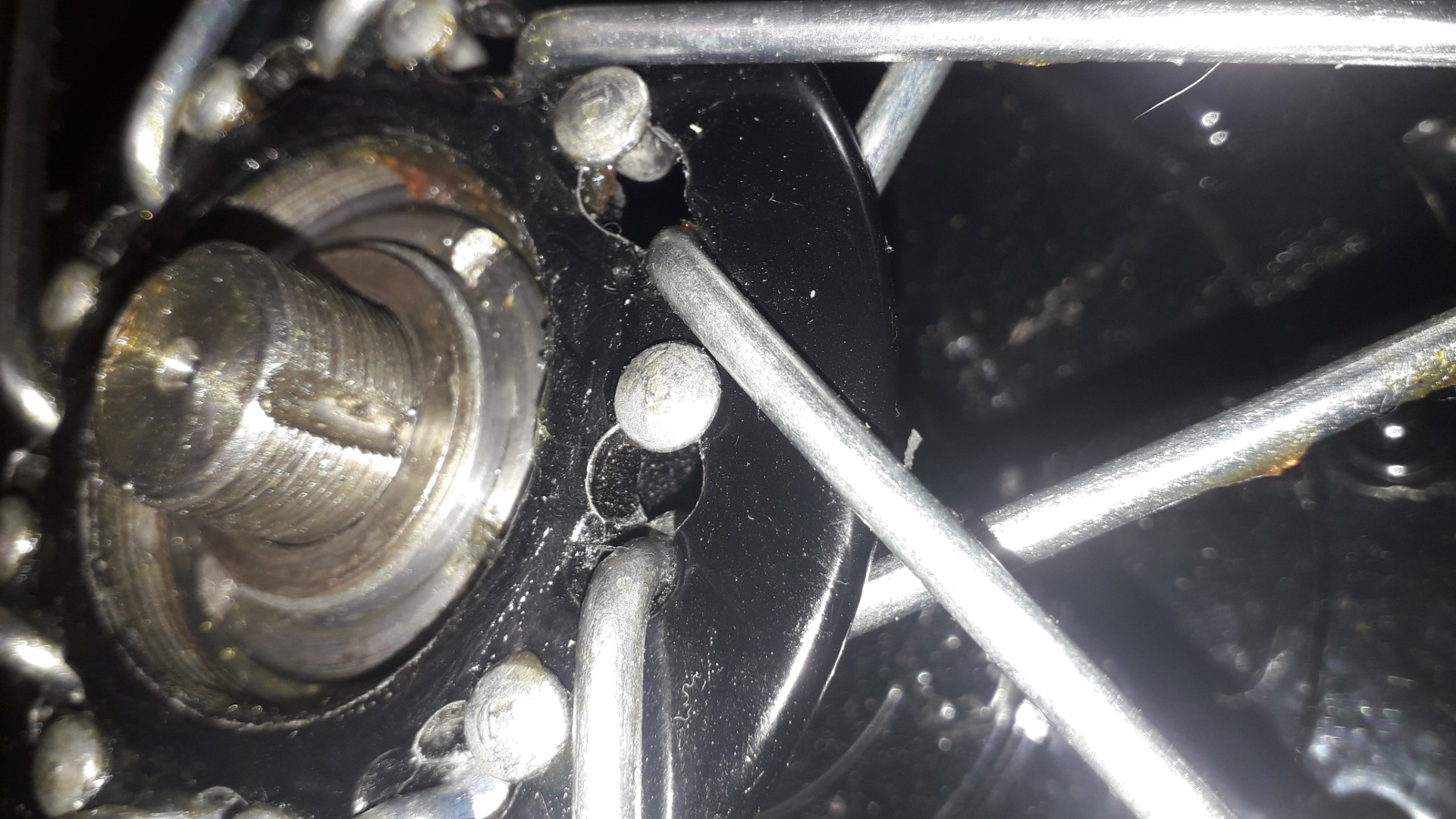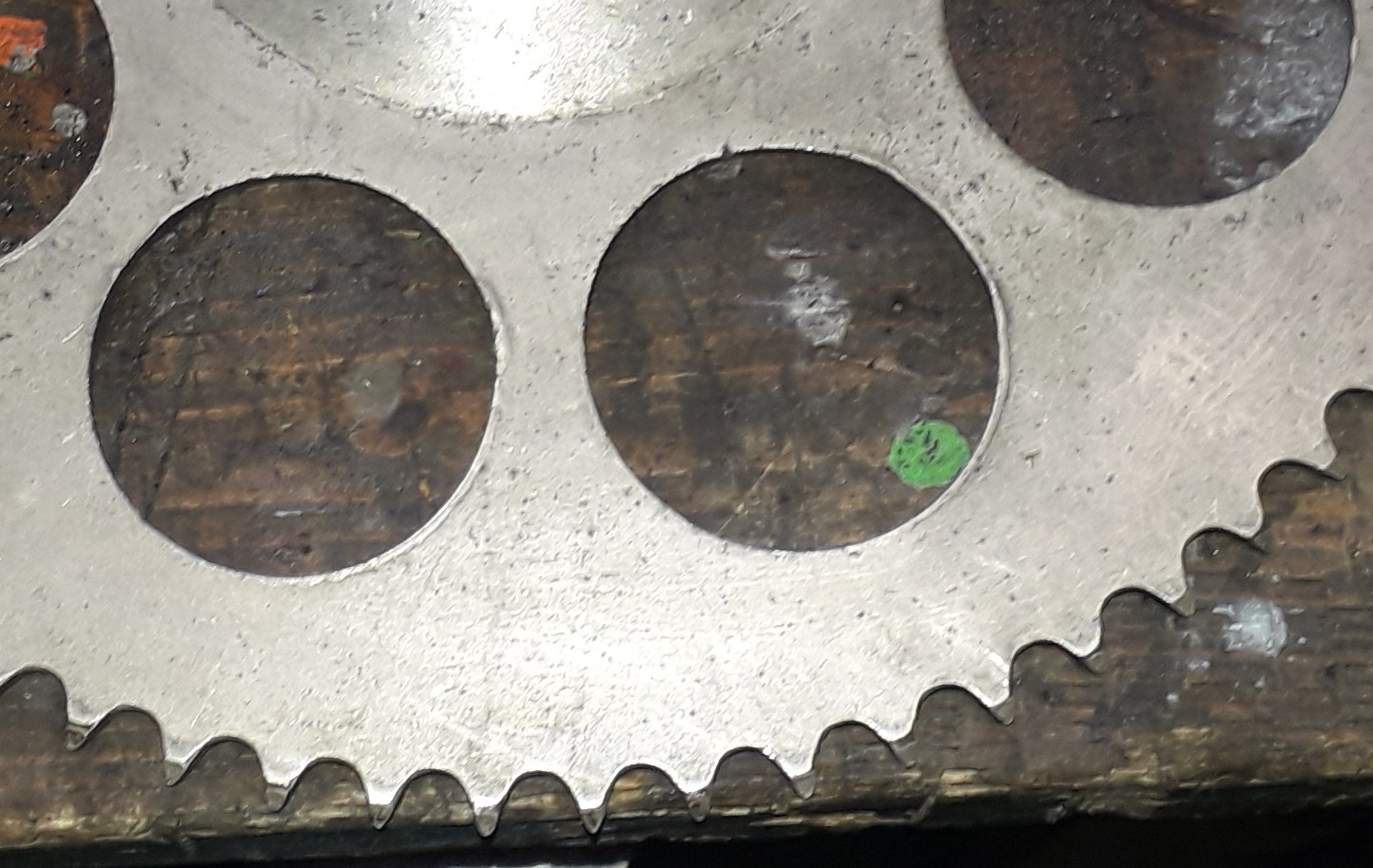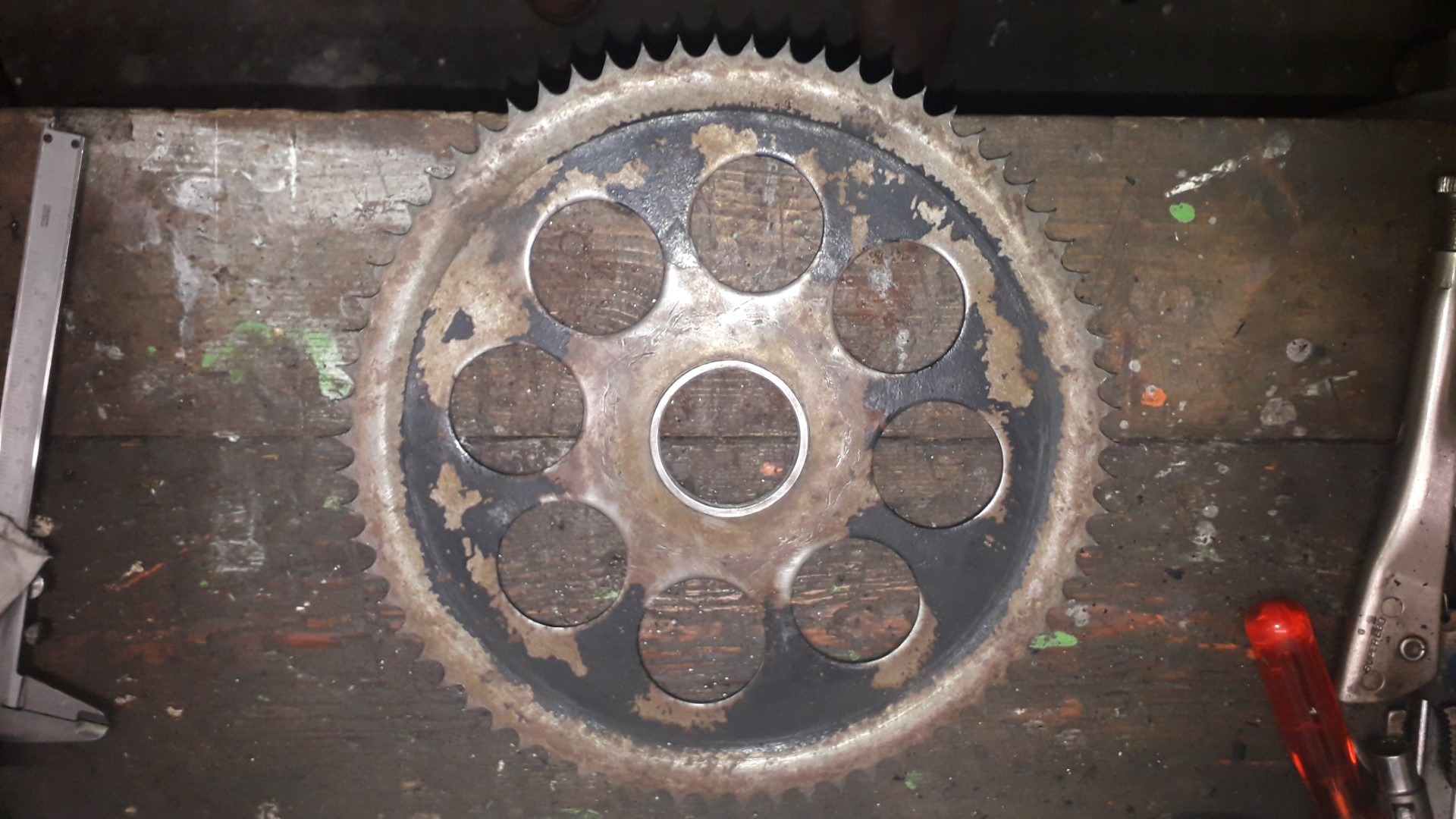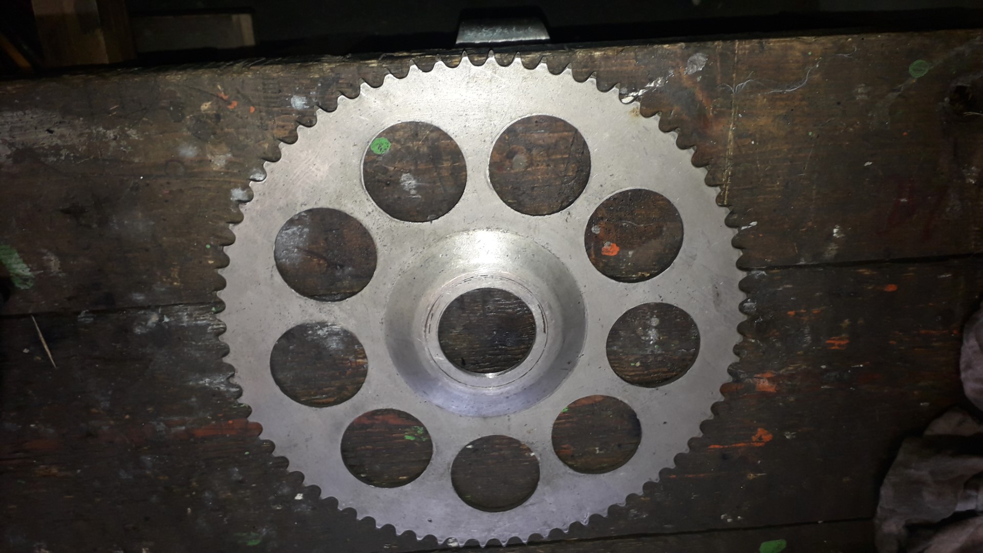 Het tandwiel dat er nog opzat, is waarschijnlijk nog van de eerste montage, want het begon steeds meer op een cirkelzaagblad te lijken.