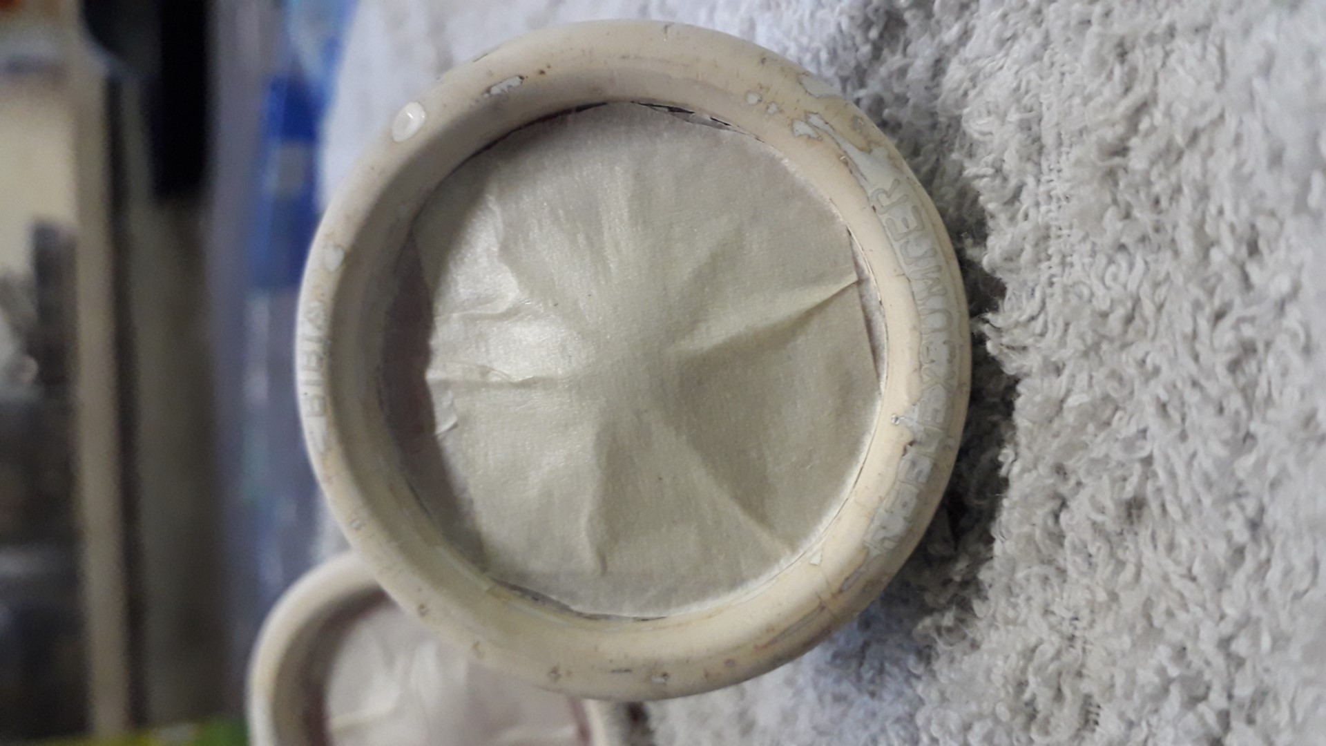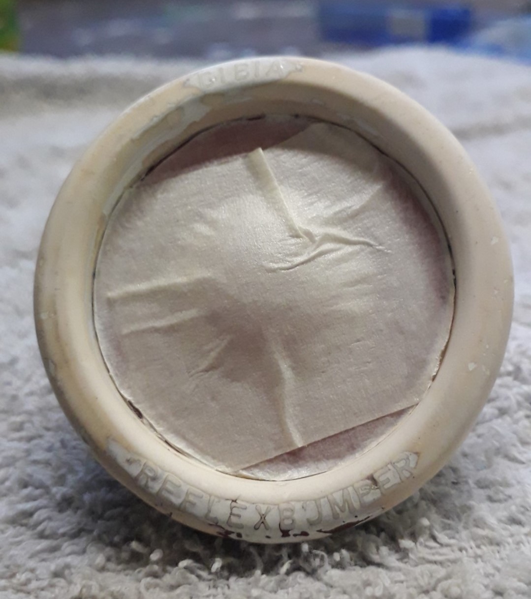 Omdat ik graag zoveel als mogelijk de originele onderdelen wil hergebruiken, heb ik een M5 boutje weer in de kunststof behuizing weten te "prutsen" en de ruimte opgevuld met "vloeibaar" aluminium (2-componenten). Daarna de kunststof behuizing van oude verflagen ontdaan. Daarbij kwam er weer een tekst op de behuizing zichtbaar: BIBIA REFLEXBUMPER. Ik kende BIBIA eigenlijk alleen maar maar van snelbinders, maar nu dus ook van reflectortjes uit vroeger jaren! De rode reflectorglaasjes afgeplakt en de behuizing wit gespoten (RAL 9010), net zoals de spatborden moeten worden. Weer een onderdeel klaar voor hermontage.