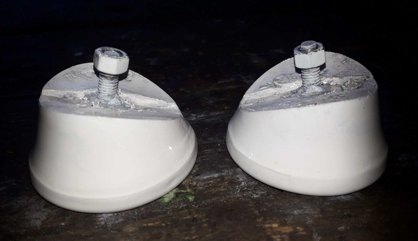 De onderste as is de aangepaste wielas met opgesneden draad en het aangepaste cupje.