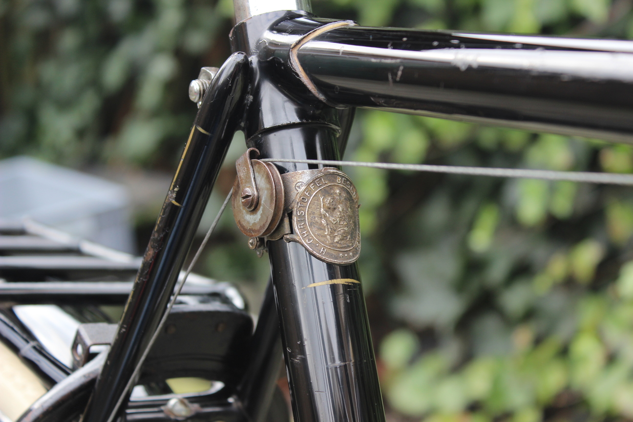 Hij is niet perfect, maar lijkt redelijk origineel. Ik denk dat er nog wel wat moois van te maken is. Als eerste komen er witte banden op en moeten een paar spaken vervangen worden, voor de rest is het voornamelijk poetsen.