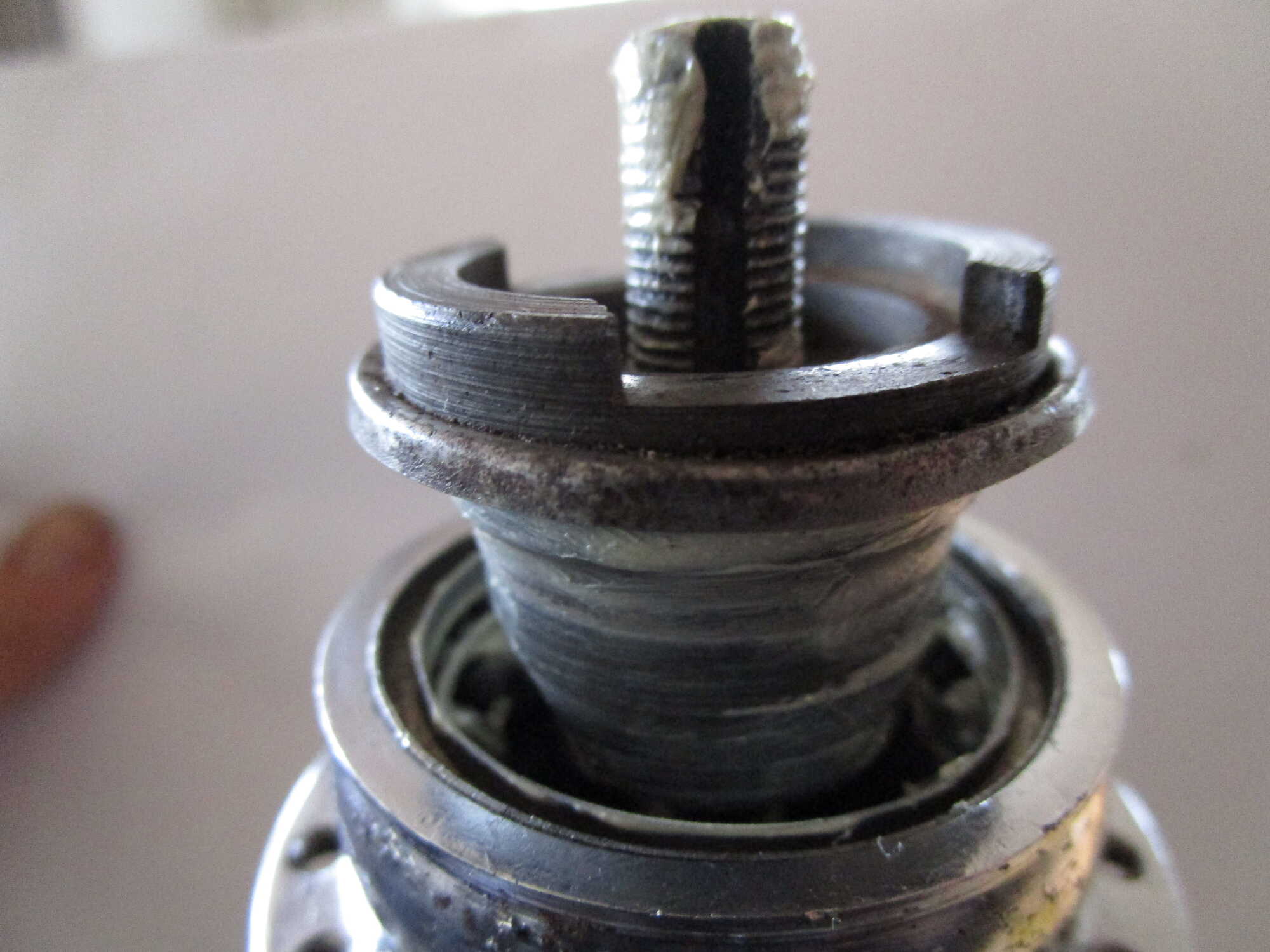 Er komt veel druk op deze schuine vlakken tijdens het remmen, dat was te zien aan de slijtage - op de foto niet zichtbaar.