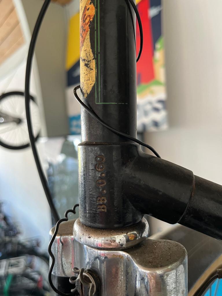 Het frame van deze fiets stamt uit 1950, daarmee is het een wel heel jong model BB (de laatste batch die ik ken kwam uit 1942). Ik zal hem binnenkort eens opzoeken in het archief.