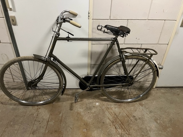 Hij is nog niet klaar; er moet nog een setje Fongers pedalen op wat ik al klaar heb liggen, een lakdoek kettingkast waarvoor ik de moed nog moet vinden om de schaar er in te zetten en bij voorkeur een een mooi jaren 30 slot. De bagagedrager laat ik er voorlopig vanaf.