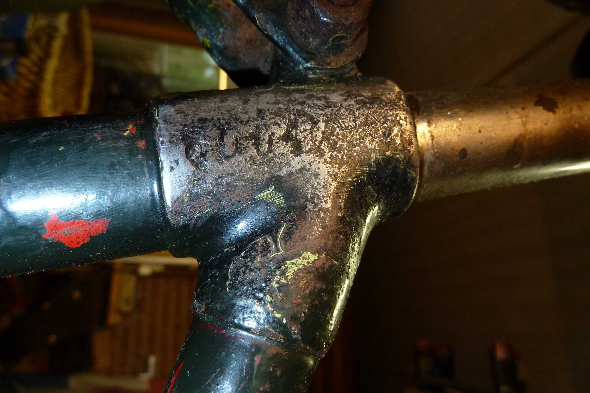 Ik gebruik al vele jaren dagelijks deze Juncker. Ik zeg altijd dat ik net zo oud ben als de fiets, zonder enig bewijs daarvoor. Nu zie ik dat de fiets vermoedelijk ouder is. Ik heb veel moeite gedaan, om het frame nr. te ontcijferen. het begint met een gespiegelde 3 dan oo4. Verder zie ik geen cijfers of letter. Het achterwiel, zadel, stuur en bagagedrager zijn niet origineel en toegevoegd. Boven op de trapas zit nog wel een smeernippel, die heb ik nog niet ergens anders gezien.Wat denk jij van het bouwjaar?