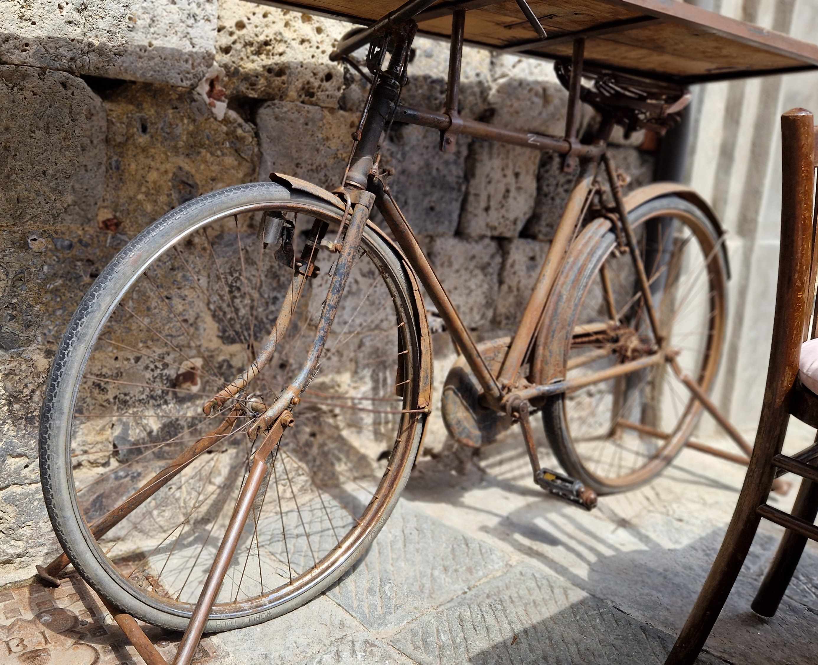 op de oude manier zoals fietsen, motorframes, steps, driewielers etc.