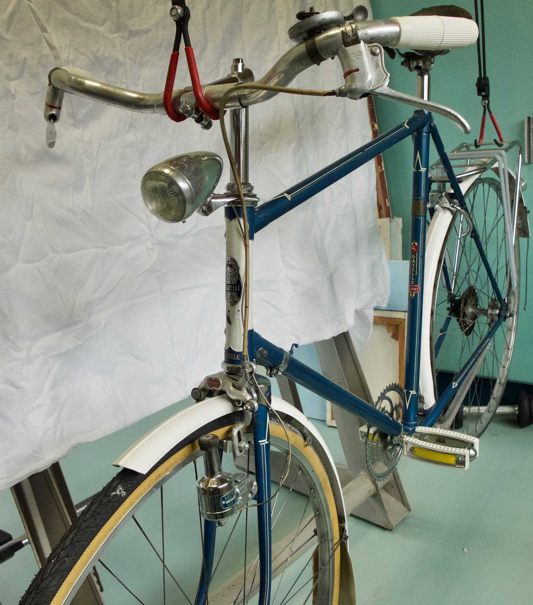De fiets ligt nu nog grotendeels uit elkaar en meer dan schoonmaken en invetten is er niet te doen.