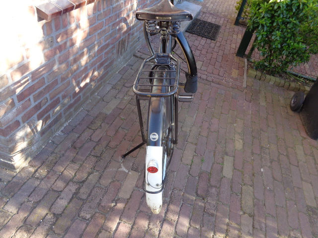 Verder kan ik vermelden dat de fiets slechts één (trommel) rem heeft, de datum in de S/A naaf is 9-57. Ik hou het bouwjaar daarom op eind 1957 of begin 1958. De verlichting is duur, namelijk van Lucifer alhoewel deze er ook pas later op gezet kan zijn. En er zit een leren Lepper zadel op.