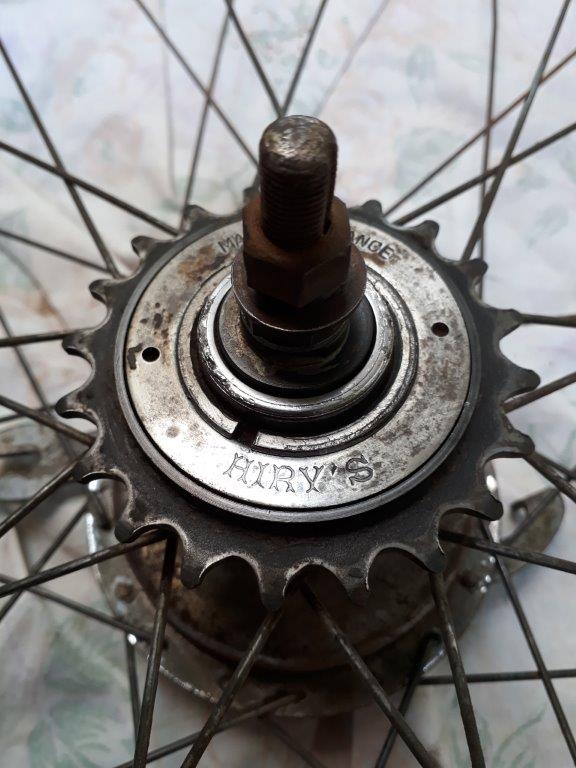 Als laatse aanknoopingspunt kan ik nog meegeven, dat bij het opkuisen van de achteras, op het tandwiel het opschrift "MADE IN FRANCE" en "HIRY'S" te voorschijn kwam.