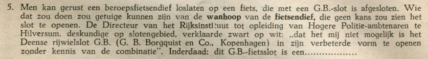 Het Gerrit Bongers-verhaal is volgens mij een broodje aap. Zie dit knipsel uit De Nederlandse Rijwielhandel (1954) waar verder ook een afbeelding van het slot bij zit. Het gaat dus om het bewuste GB-slot.