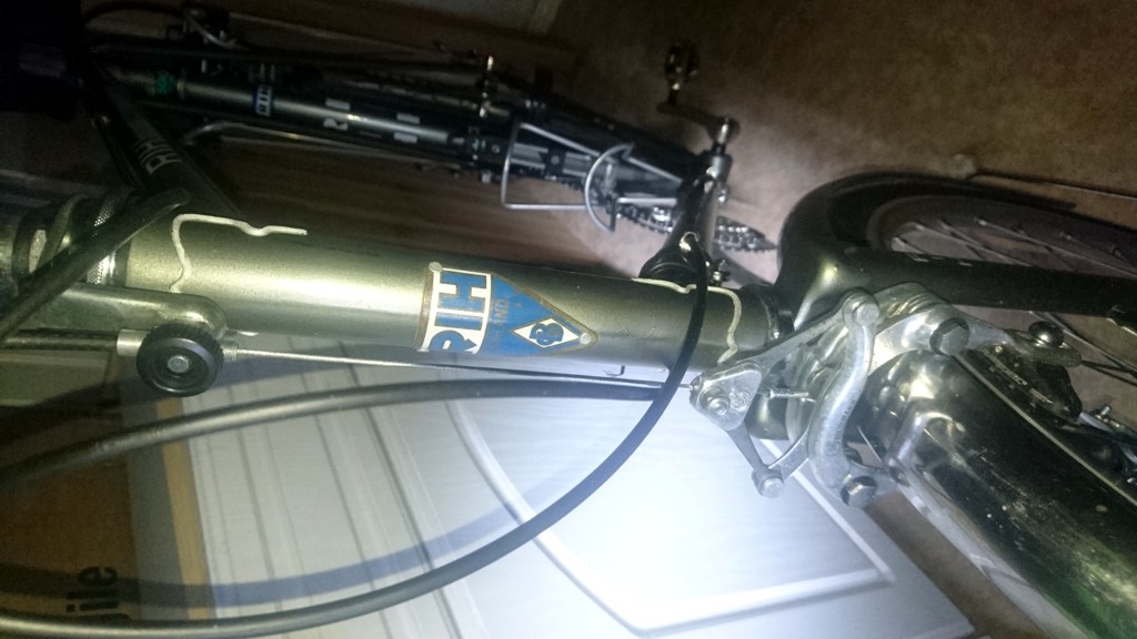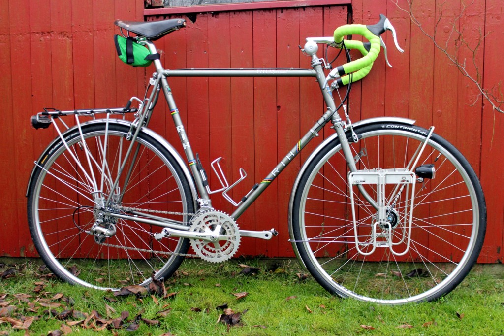 Ik had in de herfst een RIH Speciaal voor 40 EUR gekocht, omdat ik RIH altijd wel een leuke merk vond en een beetje een traditionele randonneur wilde bouwen. Inmiddels is het klaar. Ik heb eigenlijk alleen het frame gebruikt. Voor het achterwiel had ik nog een Mavic 571 naaf (8 versnellingen) en een vriend hat nog een Ultegra derailleur en bar end shifters over. De originele bagagedrager heb ik weer gebruikt en er ook nog een passende ESGE lowrider voor gevonden. Behalve de wielen en de versnelling is het fiets dus in een oude toestand.