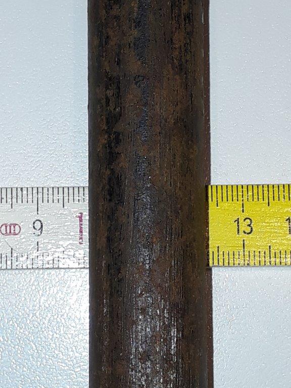 Verder geen aanknopingspunten; ooit zwart geweest; geen ingeslagen merktekens; gaatje bovenaan waarvan het doel mij onduidelijk is;