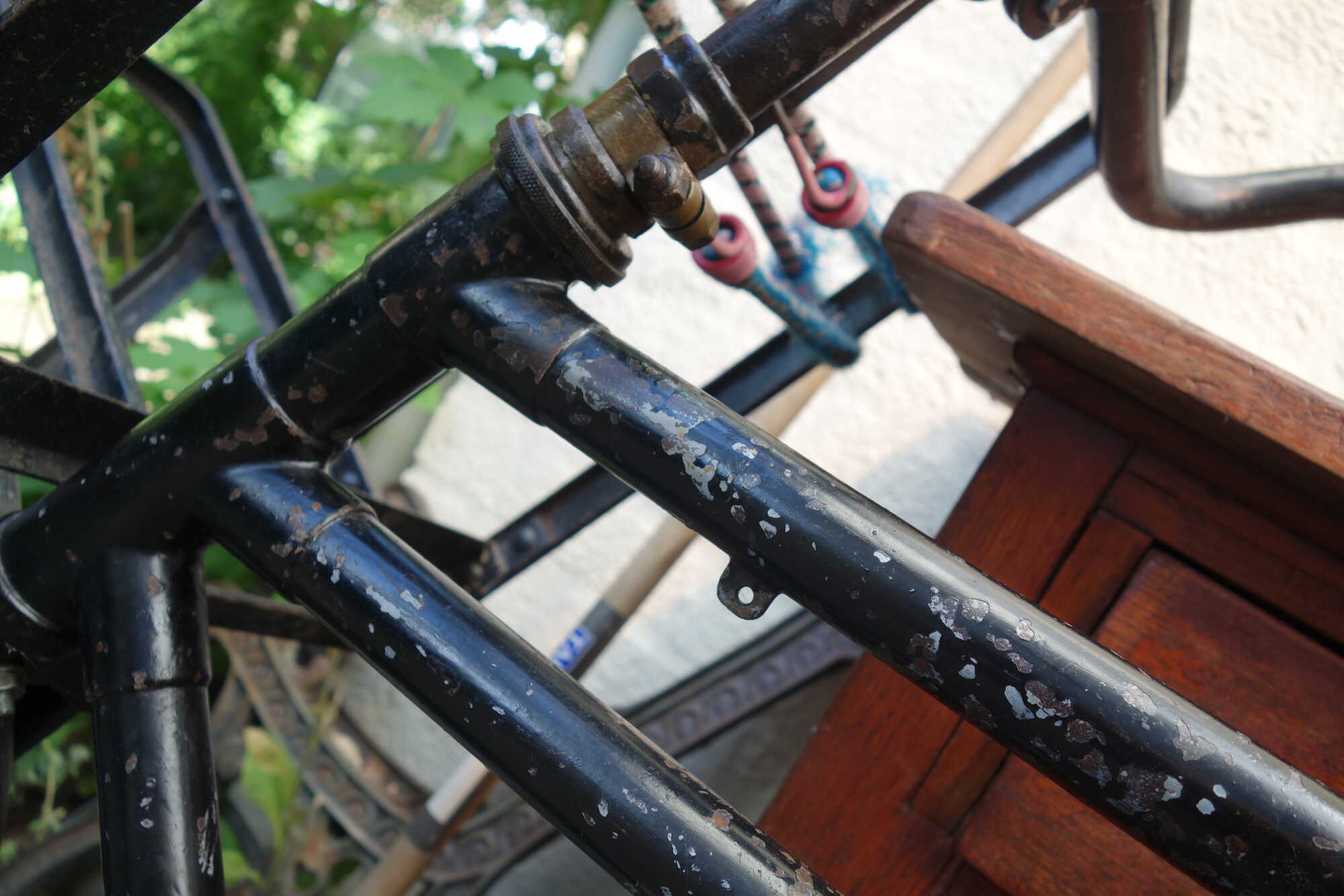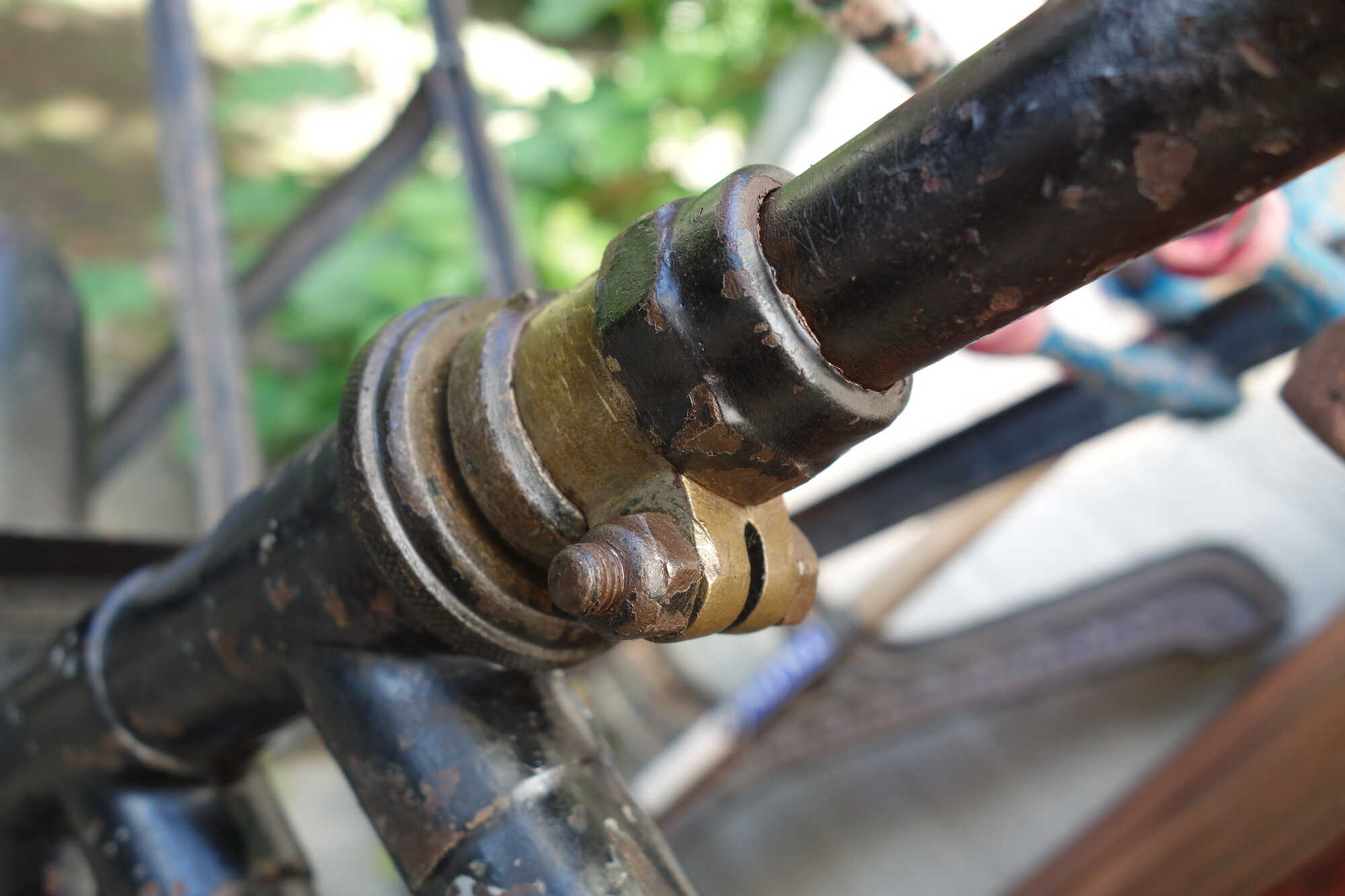 Het viel me op dat het stuur geen nikkel heeft en de balhoofdonderdelen wel ooit maar al lang niet meer.