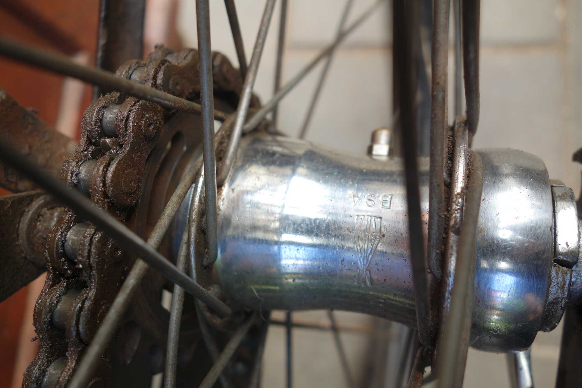 Leuke fiets die origineel vernikkelde onderdelen heeft. De achternaaf is van BSA en een latere toevoeging in chroom.