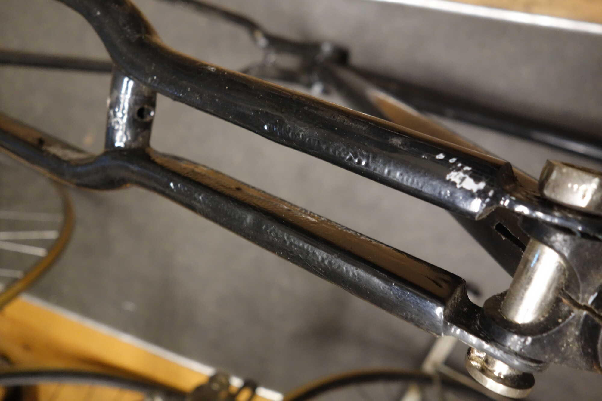 sorry, ik had een zin toegevoegd die op een verkeerde plek terechtkwam. Ik bedoelde inderdaad de horizontaal lopende achtervork, waardoor de fiets hoger gebouwd is. De meeste 20e eeuwse fietsen hebben een iets schuin omhoog lopende achterbrug,en daardoor een wat lager bracket, iets wat in de jaren 30 nog verder zou worder doorgetrokken met de verkeersrijwielen. Bedankt voor de verdere fotos !