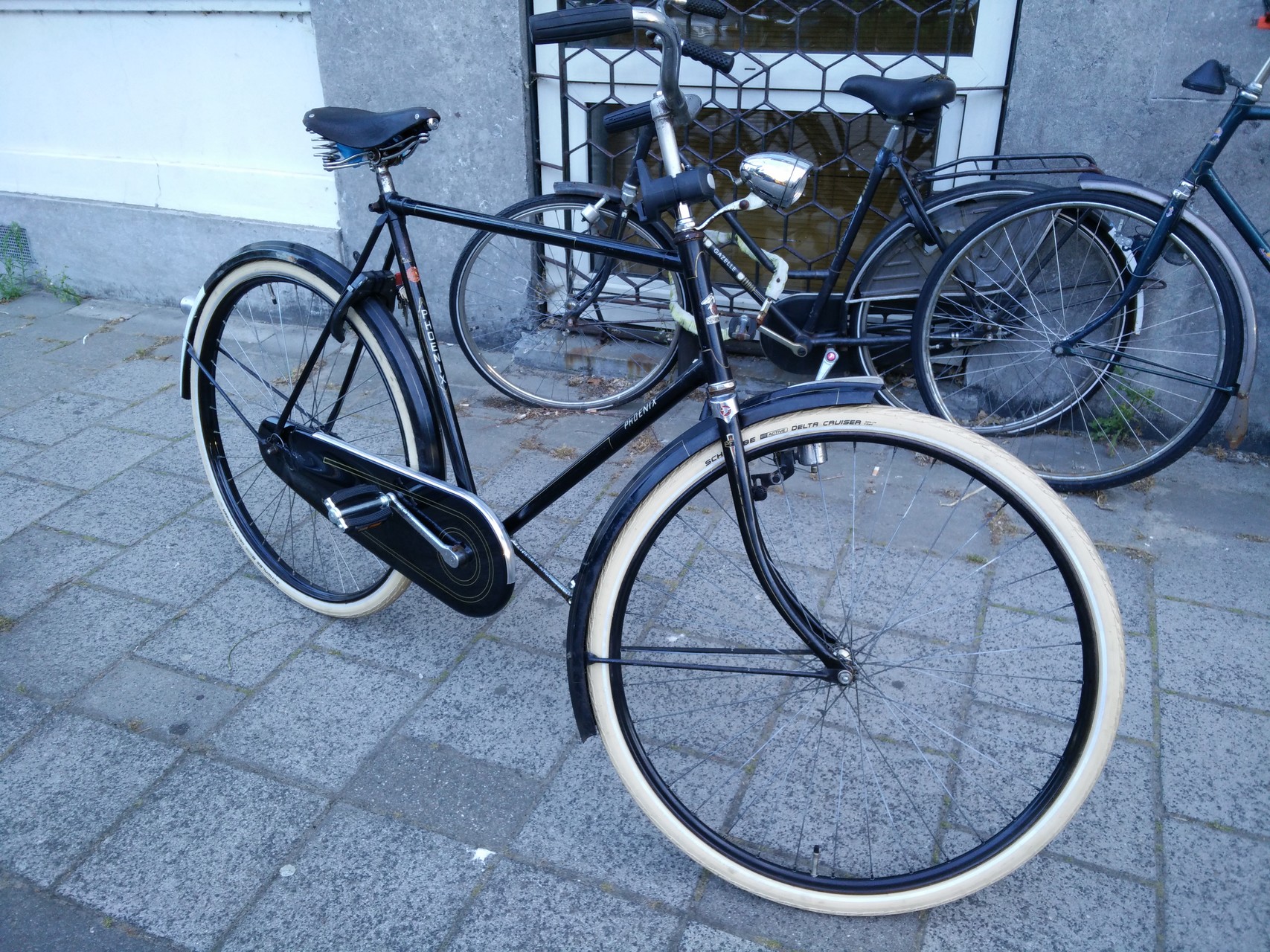 Qua achterlicht. Eens. Hoort een 'moderner' lampje op, zoals je aangeeft, maar ik vind deze wel leuk staan. Mooi koets lichtje... Wellicht in de toekomst weer wat origineler maken. Inmiddels 2 nieuwe wielen, ander dynamo, want de originele was kapot en een kunststof retro kettingkast (woon in de stad, waardoor er nogal eens een trapper van een andere fiets door het lakdoek ging... Bastards... ;)
