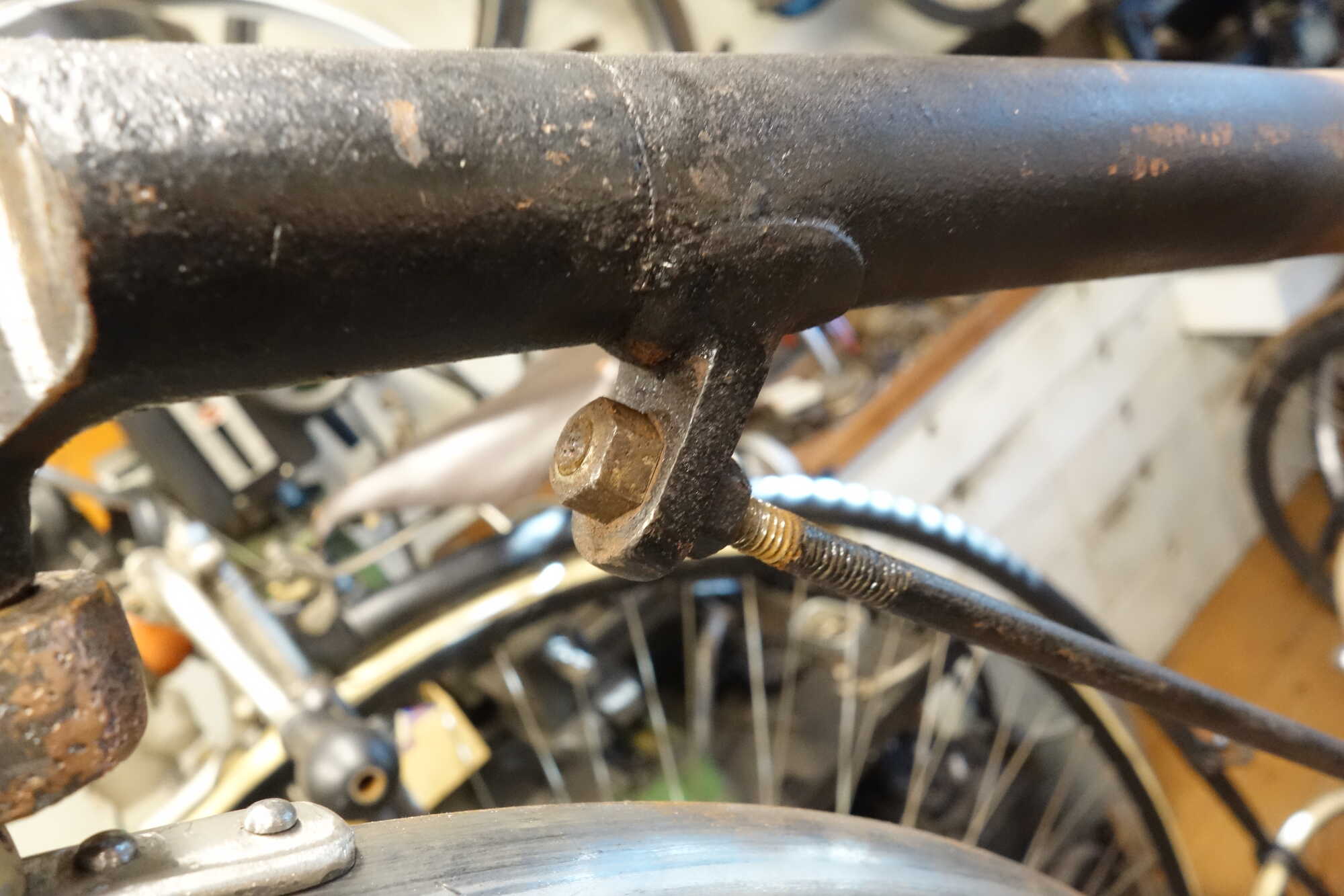 De spanstang zit qua schroefdraad weer aan het begin en de framebuis blijft nu overal even ver van het achterwiel. Dat gaat er denk ik beter uit zien.