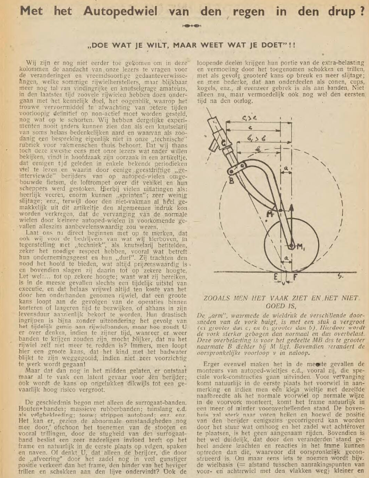 Ik vond zojuist nog dit artikel uit De Nederlandse Rijwielhandel 1943, over de autoped wieltjes als voorwiel: