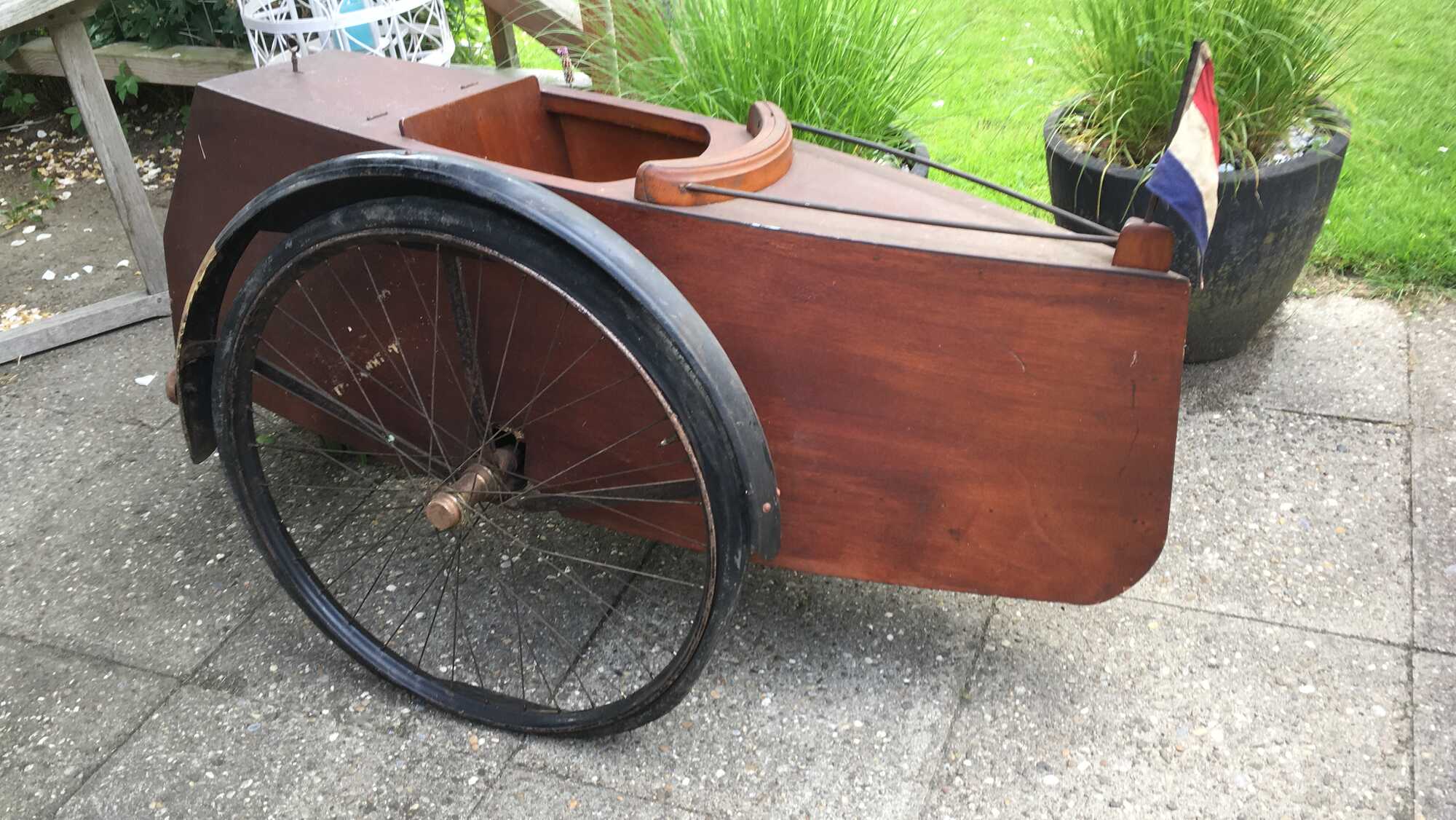 Een zijspan is strikt genomen ook een aanhanger, dus ik maak van de gelegenheid gebruik een plaatje te laten zien van een exemplaar uit de jaren dertig. Er zit een transfer op van de Zwolse fietsenmaker Bredewold. Het is aannemelijk dat deze hem heeft gemaakt en verkocht. Het enige dat ontbreekt is een kunststof ruitje, verder staat hij compleet bij mij in de schuur, in afwachting van een ritje.