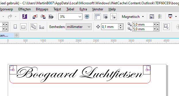 Eerst eens even een ontwerpje gemaakt. De laser waarop het gemaakt wordt heeft een maximaal formaat van 45 x 30 cm dus het ontwerp moet wel in de laser passen. De tekening is een vector bestand, de rode haarlijn = snijden, de zwarte haarlijn = graveren en de blauwe blokjes worden overgeslagen maar waren om de houdertjes even voor proef in de tekening te kunnen plaatsen voor het bepalen van de gaatjes: