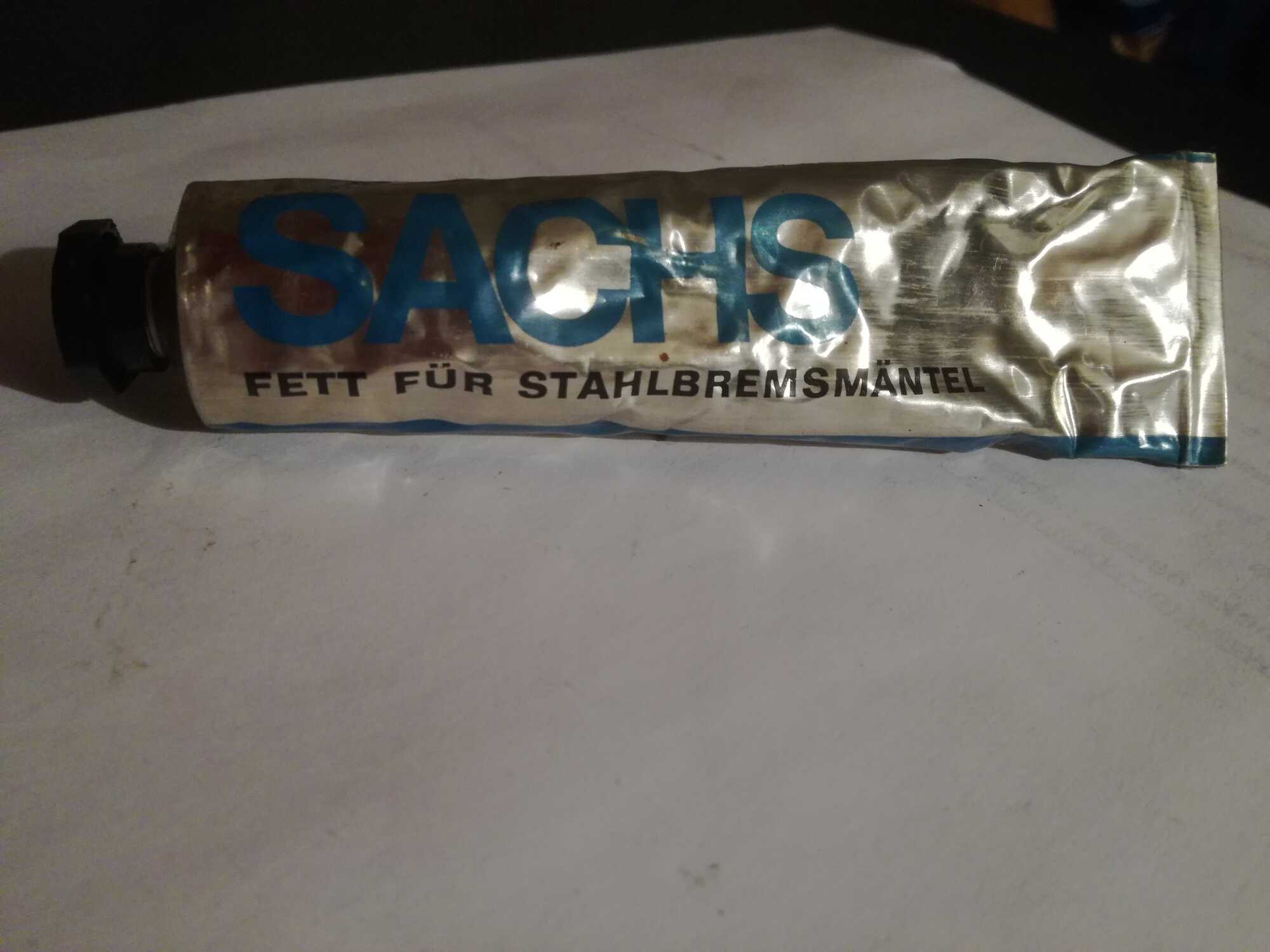 Die vergen verschillende vetten. Voor staal heb ik een tube 'Sachs Fett fuer Stahlbremsmaentel" [bijlage]