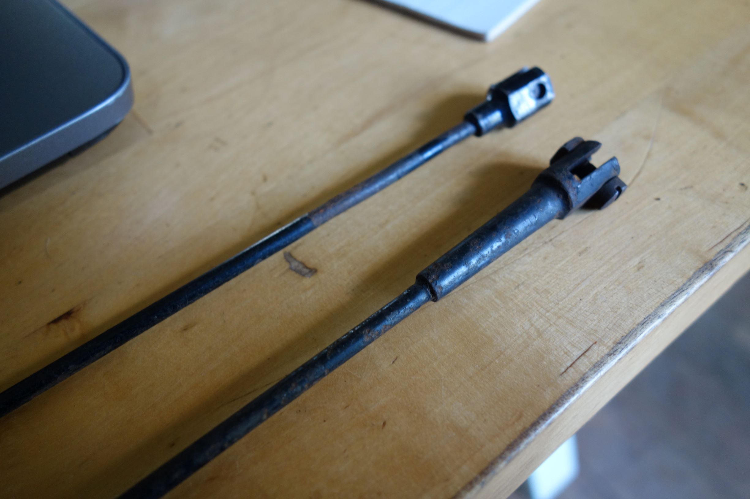 Door een vervelend ongelukje met het borgmoertje van de remhevel, zijn de onderste twee remstangen van mijn fiets gebroken (die langs de schuine buis en die naar het achterwiel ), ook de scharniergewrichten zijn wat ontzet , maar die kan ik nog wel buigen. Wie heeft er wat liggen? Het zijn gelakte remstangen van volgens mij een standaard SA type. Ik woon nu in Noorwegen waar dit soort artikelen niet gewoon op straat liggen en kom de eerste tijd helaas niet naar Nederland. vanzelfsprekend betaal ik de verzendkosten, vriendelijke groet, Rein