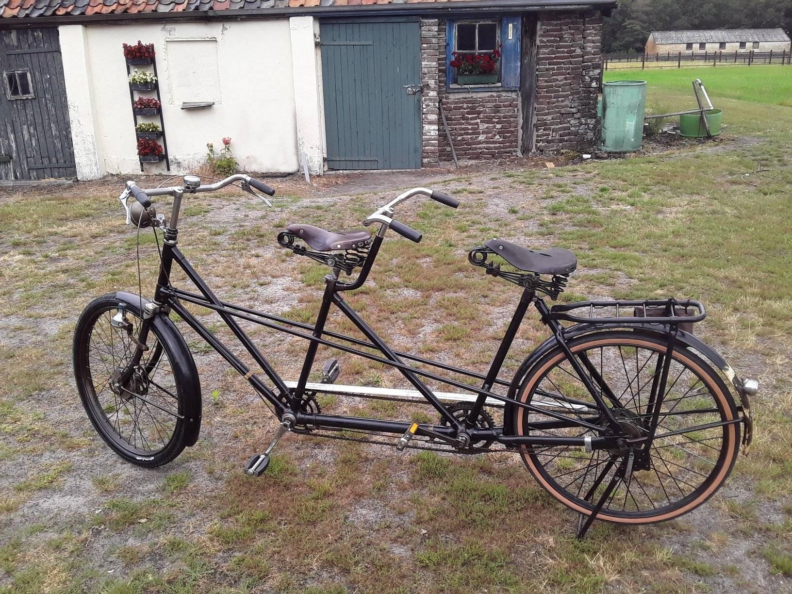 Ik heb een tandem gescoord . Nu lijkt het erop dat het een Avia is . Via vergelijken op internet. Er staat niets op . Geen nr gevonden . Er zit een eland koplamp op . Een Philips dynamo en op de ring ( moer ) die op het balhoofd zit staat SAG.