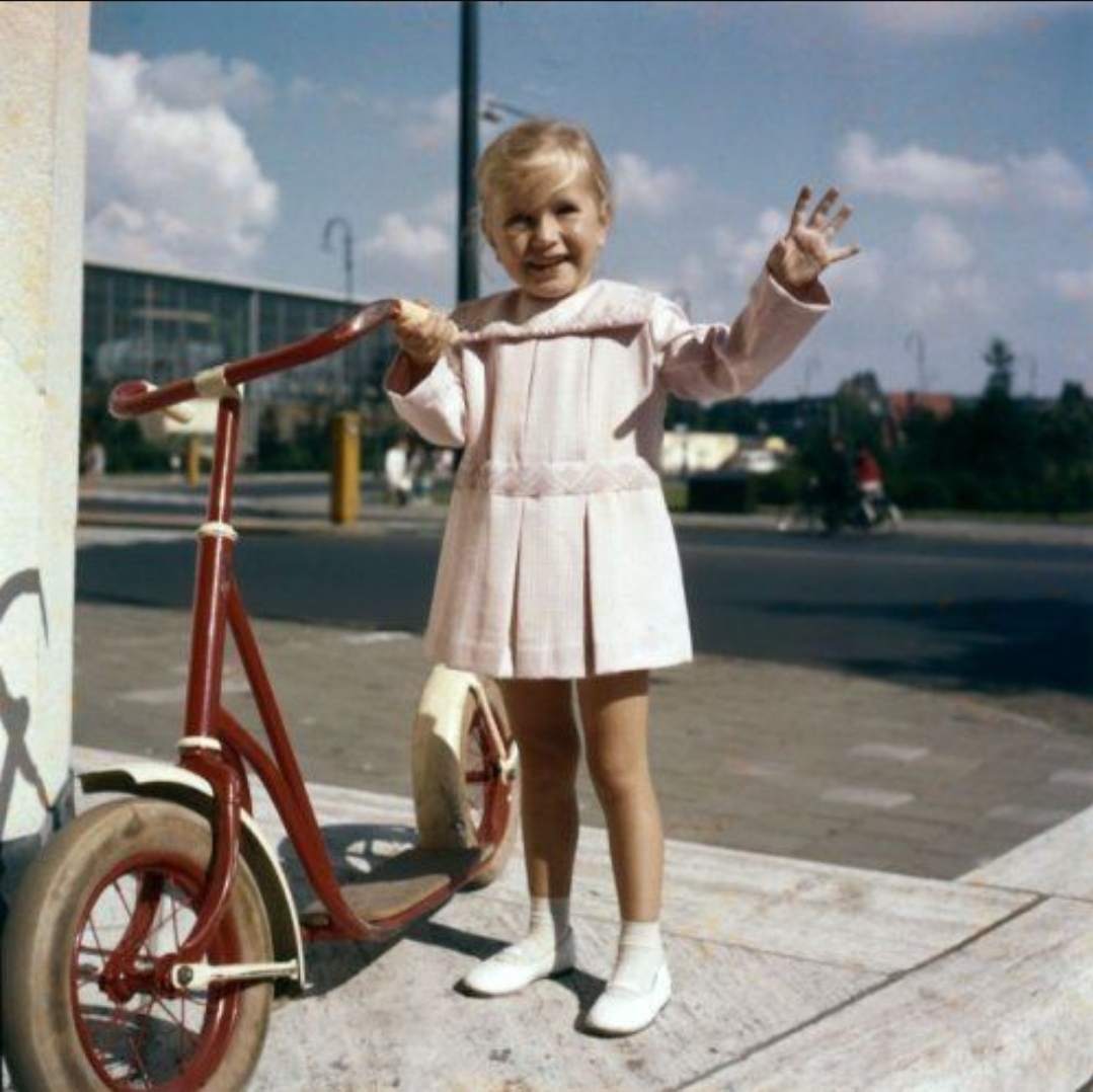 Nu ben ik even aan het rondspeuren, want ik ben van de generatie die een bestuurbare auto kreeg voor het buitenspelen ipv een autoped :lol: Dit specifieke model step lijkt zeer algemeen te zijn geweest begin jaren '60. Internet staat vol met allerlei leuke afbeeldingen, zoals deze: