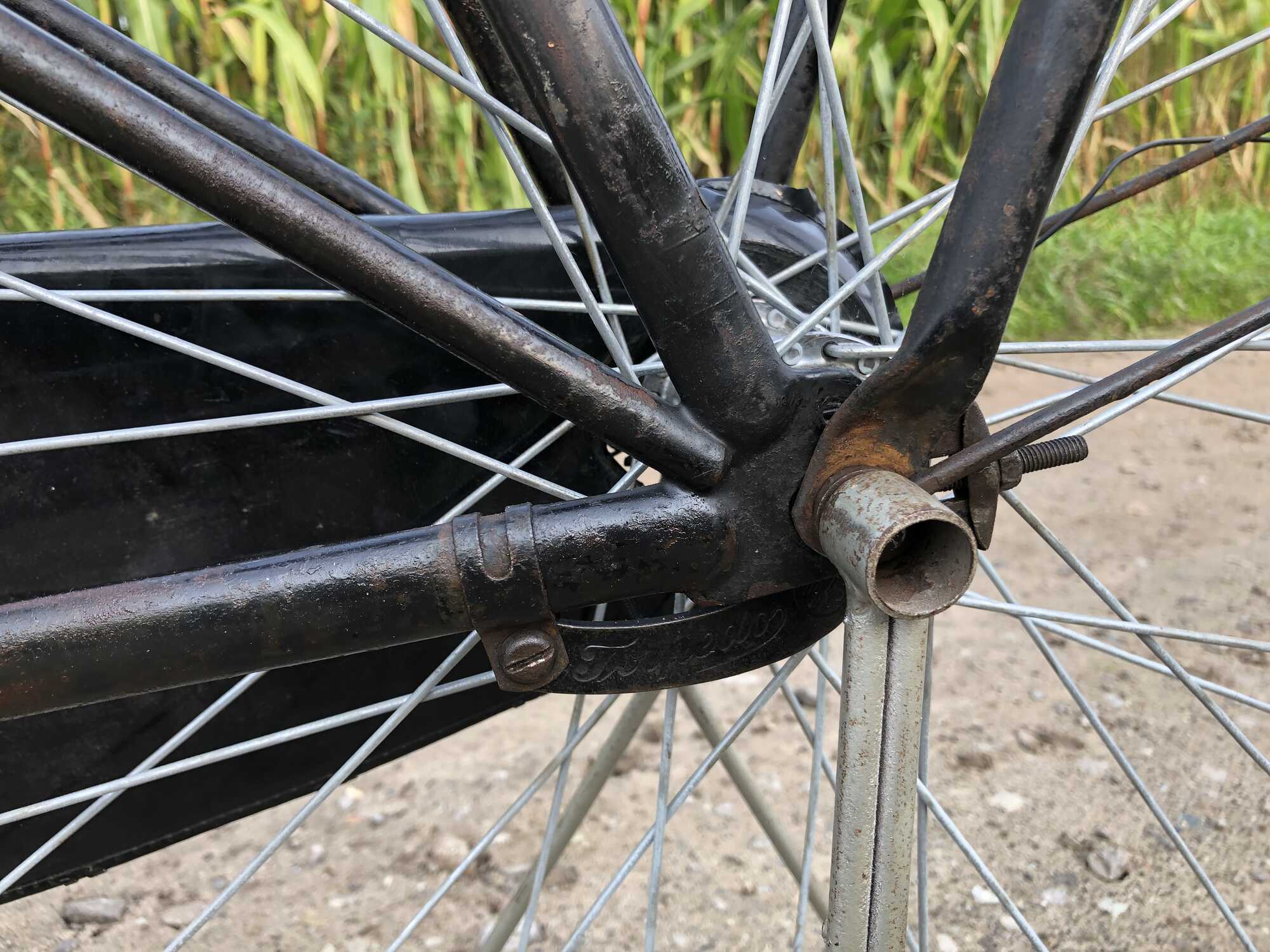 Maarten, deze fiets moet geleverd zijn met een terugtrapremnaaf. Anders zouden er volgens mij van die nokjes op frame aanwezig moeten zijn. Die zijn niet aanwezig. In de folder van Simplex staat ook dat ze werden geleverd met een torpedo terugtrapremnaaf.