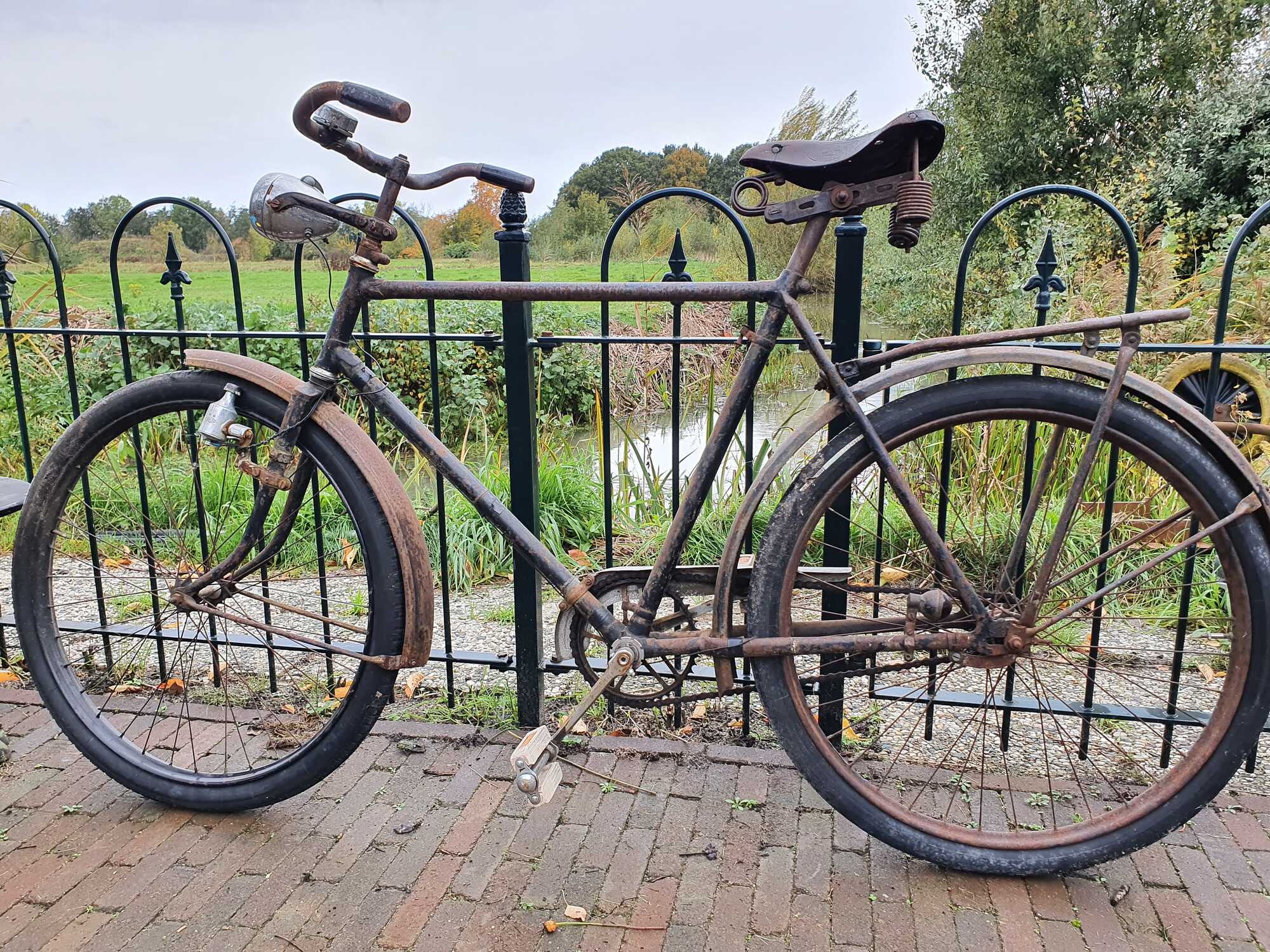 Ik ben erg benieuwd wat het merk is van deze fiets en uit welk jaar hij komt. De crank/ketting is aan vervanging toe, een zadelveer is afgebroken en opnieuw gelast (zit ietwat scheef) en de bagagedrager zit los. Ben benieuwd of iemand meer weet?!