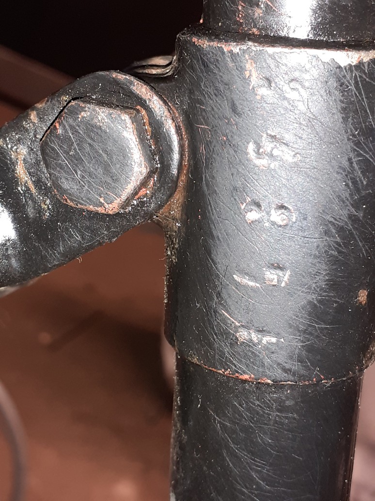 De fiets opgehaald. Is ( zoals verwacht) overgeschilderd. Spatborden lijken me niet origineel ( ?). Fietsbel is PJK , nooit van gehoord , zal jaren 50 zijn .. koplamp Bosch. Achternaaf , merk ken ik niet. Lamphaak heeft het mooiste kenmerk. Haas ,steenbok, paard ? Geen idee welk dier het is en welk merk daar bij hoort ! Wellicht weet iemand daar wat meer over !( en wil dat delen ...)