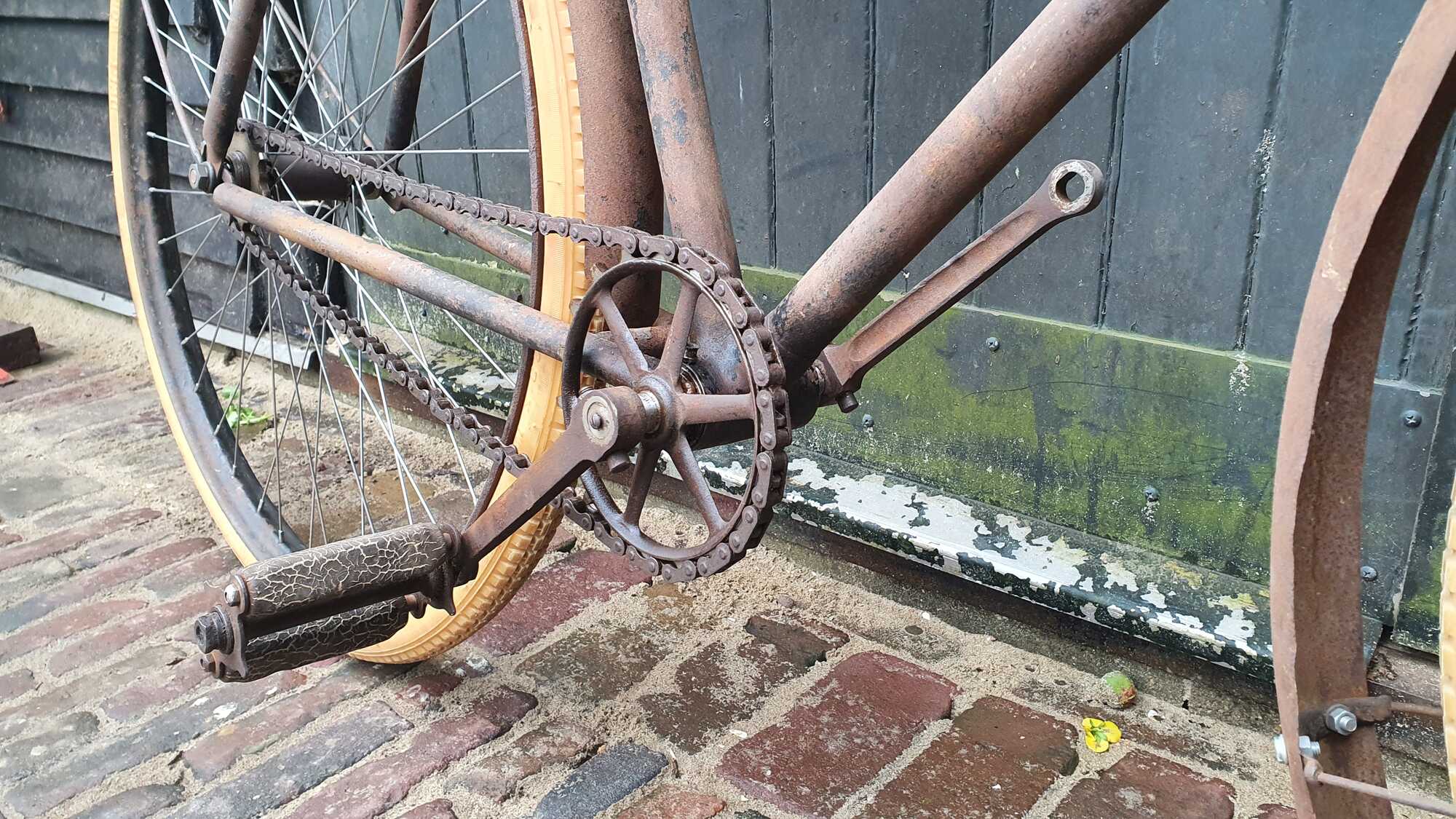 Het bouwjaar zal 1896-1898 zijn. Geen schuifbare pedalen meer, en de bovenbuis loopt al horizontaal.