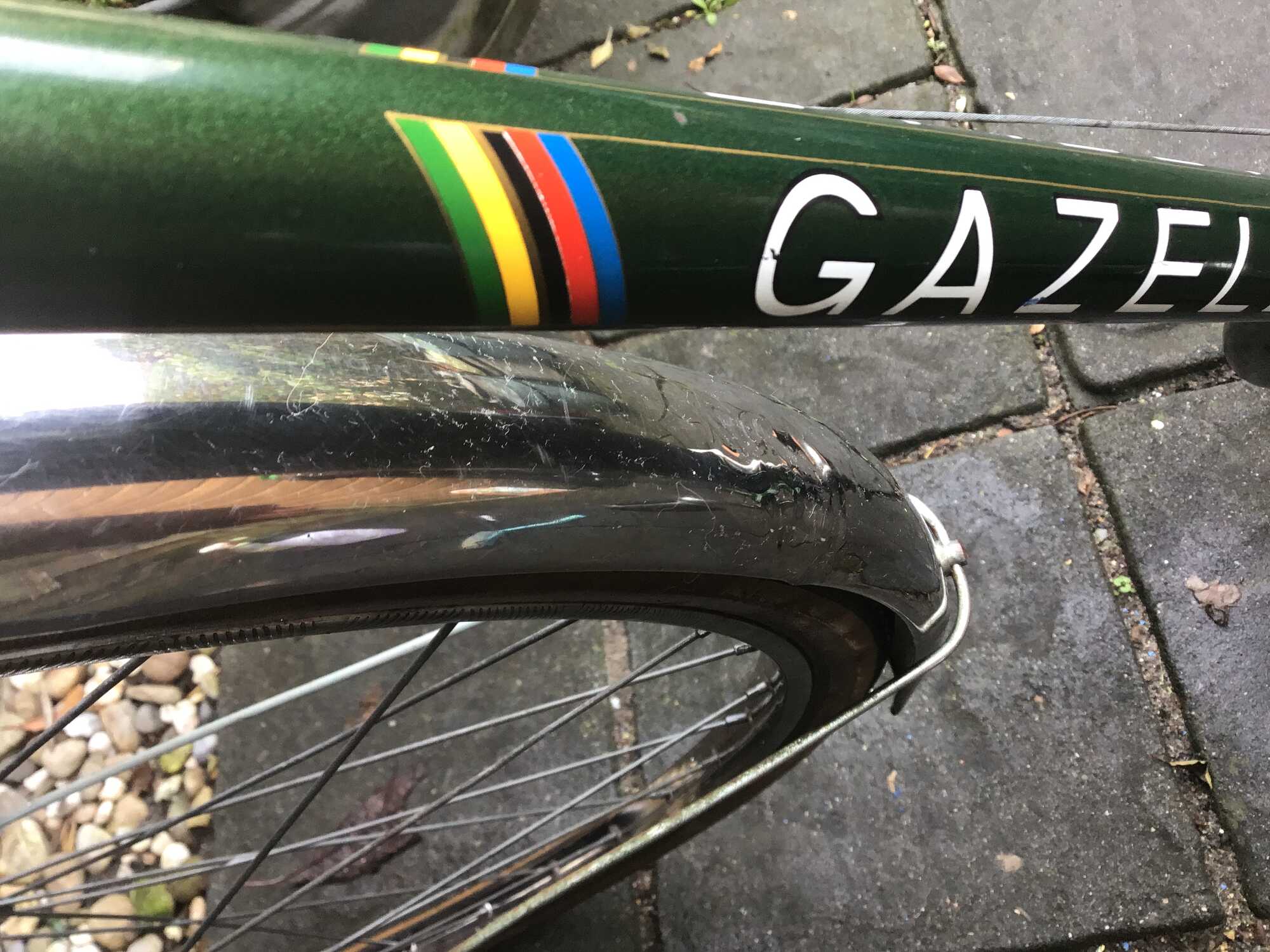 Ik heb deze Gazelle Grand Tourist, het zustermodel van de Gazelle Tour de France, een paar jaar geleden gekocht via Marktplaats en dit is mijn eerste fiets geweest waar ik echt wat meer aan geklust heb en dingen mee heb uitgeprobeerd. De maat is eigenlijk net te klein voor mij, maar aangezien ik klassieke fietsen graag enigszins moderniseer en toch in klassieke stijl houd wilde ik deze ook nog een grote beurt geven. Waarschijnlijk gaat deze in de verkoop, misschien houd ik hem toch zelf als fiets om gasten en vrienden op te laten rijden. We zullen zien.