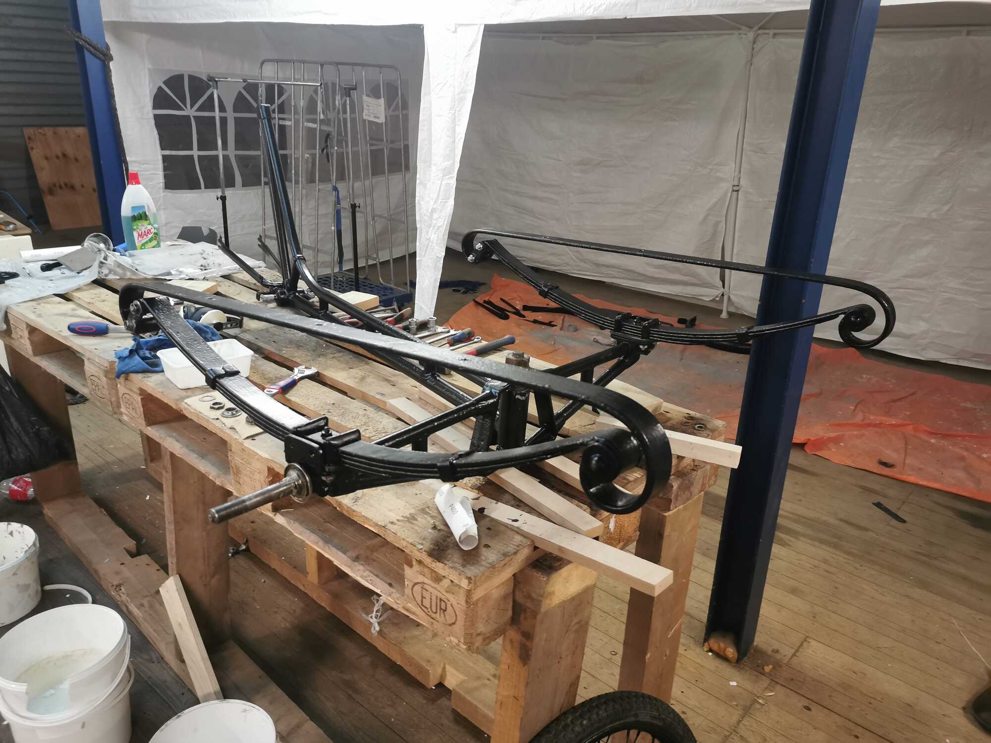 Ik heb alle onderdelen die ik heb ondertussen opnieuw in de verf. En ben weer begonnen met de montage van het frame.