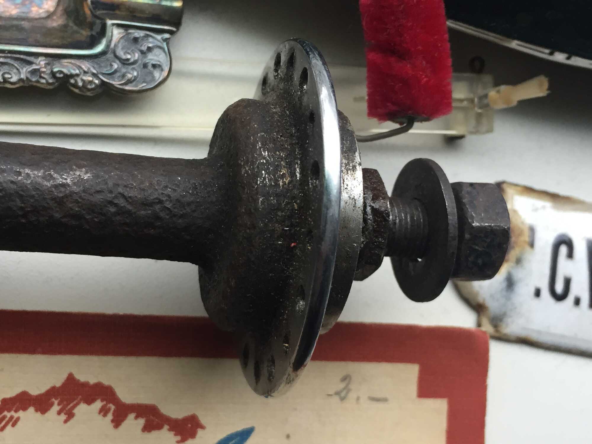 Het chroom op de flensen is een beetje aangetast maar verder nog mooi. De uiteinden van de as zijn ook verchroomd.
