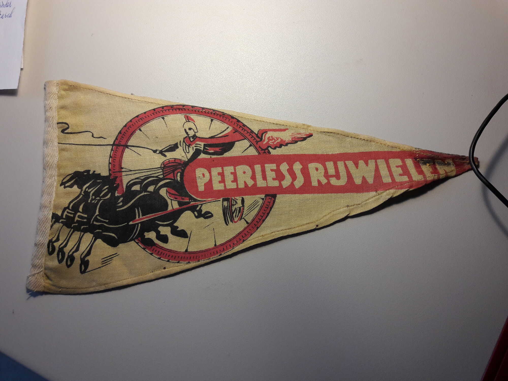 Ik vond een stuk of 18 vlaggetjes. Merendeels souvenirs (amsterdam, hellendoorn, ...), maar ook van de Melkbrigade ( :lol: ) en zowaar: PEERLESS RIJWIELEN.