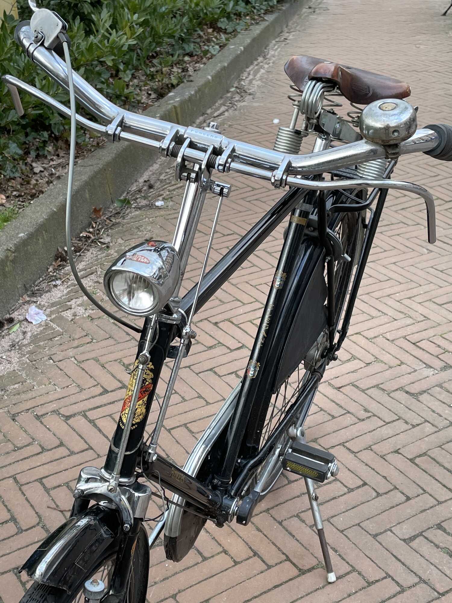 Om te beginnen hoop dat jullie me kunnen helpen met bepalen wat er origineel is aan de fiets in z'n huidige staat, en wat er juist ontbreekt. Twee dingen die me zelf al opvallen: