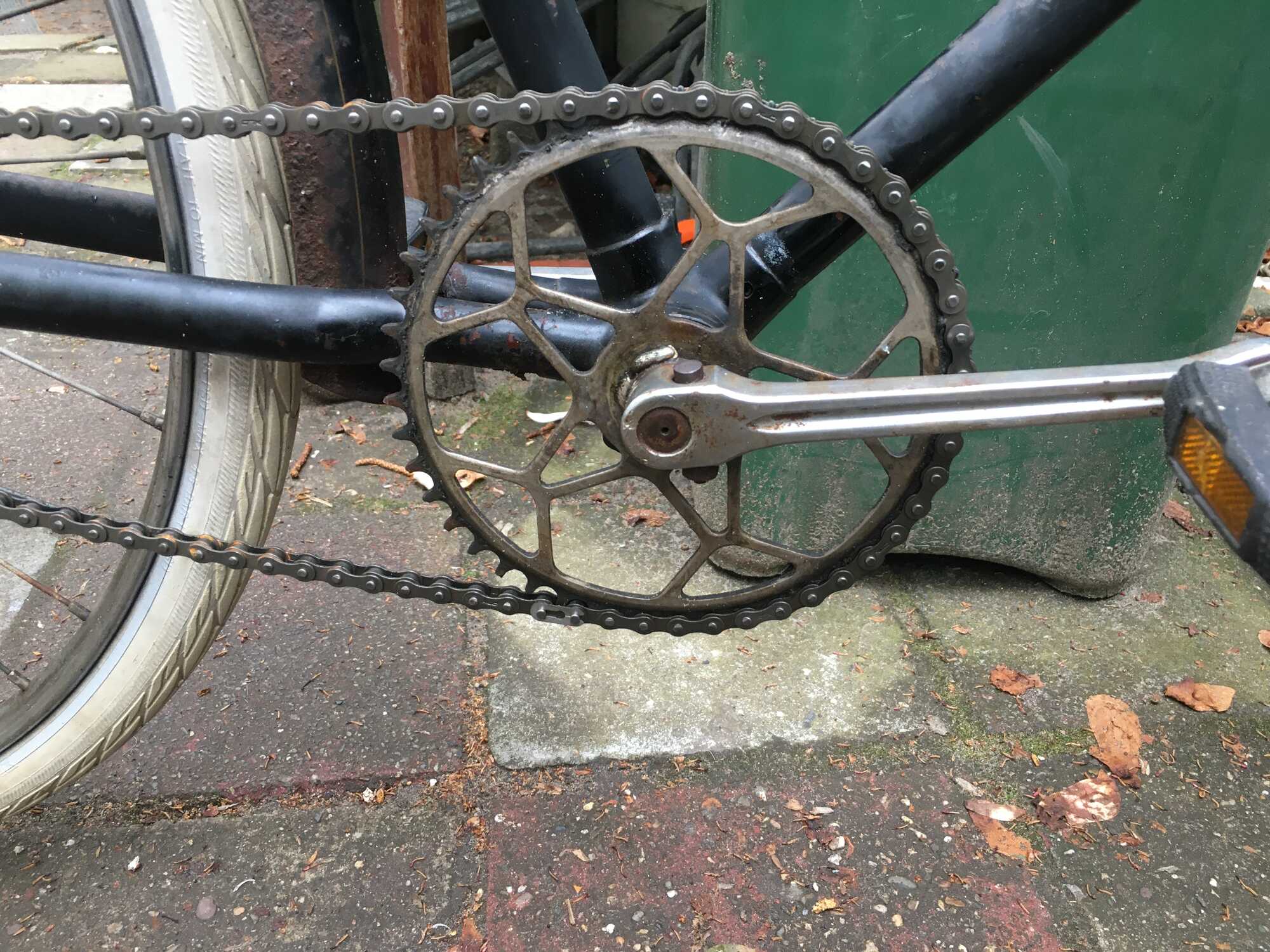 De typische s-jes die je als kleine transfers op Simplex rijwielen uit de jaren 50 tegen komt hebben nooit op deze fiets gezeten. Ik zie restanten van een enkele bies, simpel en goedkoop.