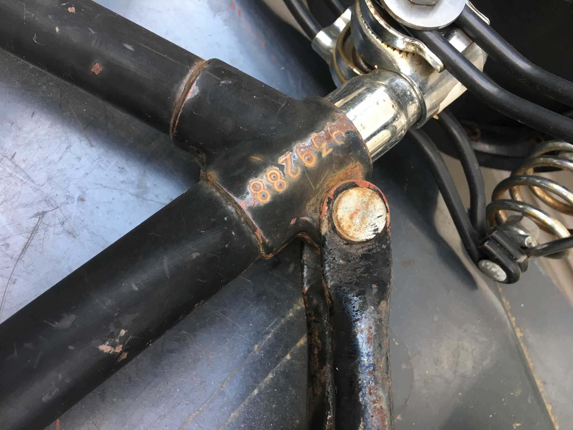 Uiteindelijk monteert Simplex ook een vaste lamphaak en dynamohaak, op mijn kruisframe uit 1957 zitten die nog niet.