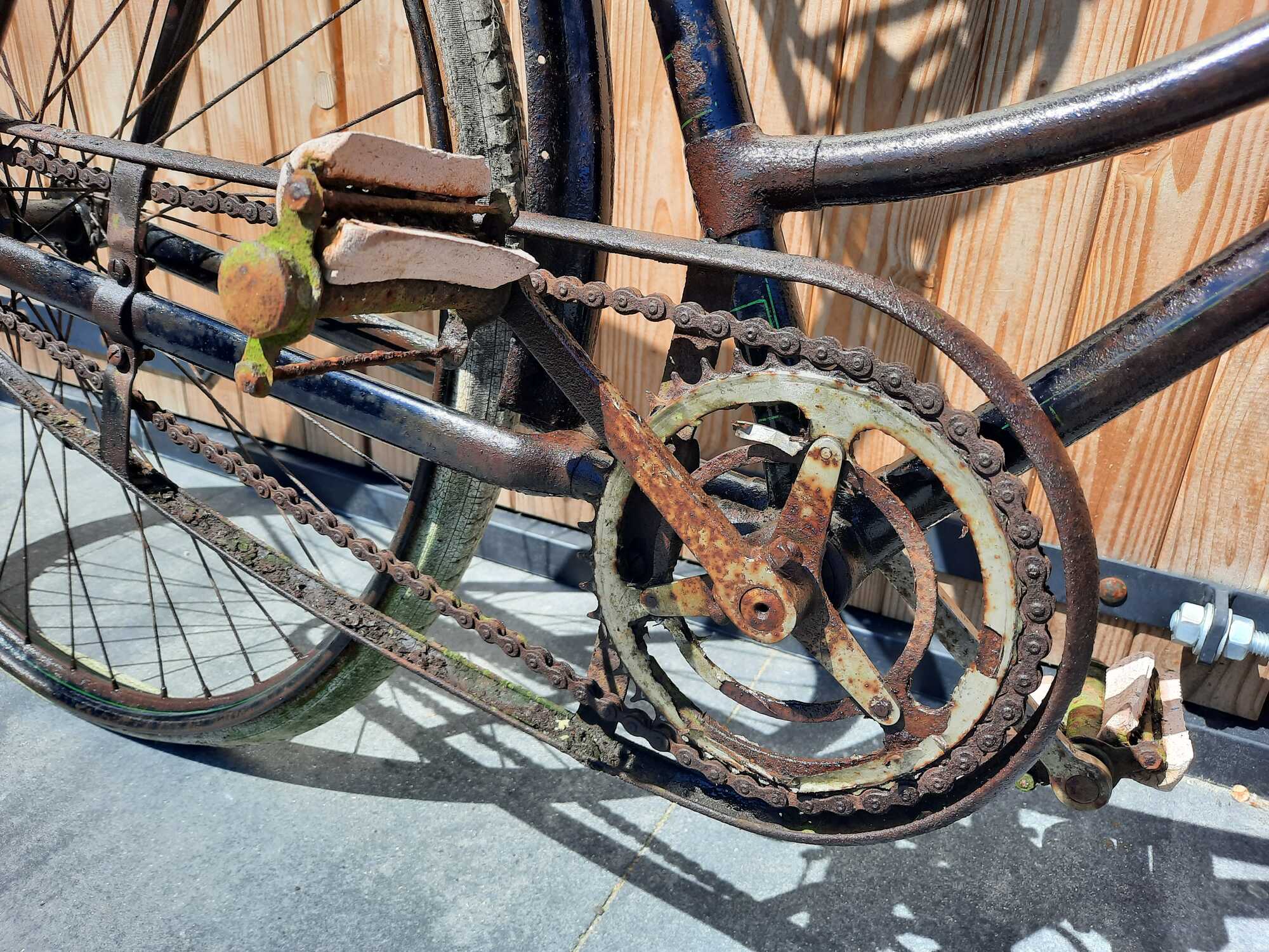 De fiets heeft 2,5 jaar in de tuin gestaan en dat is ook te zien maar desondanks in mijn ogen een zeer fraai exemplaar.
