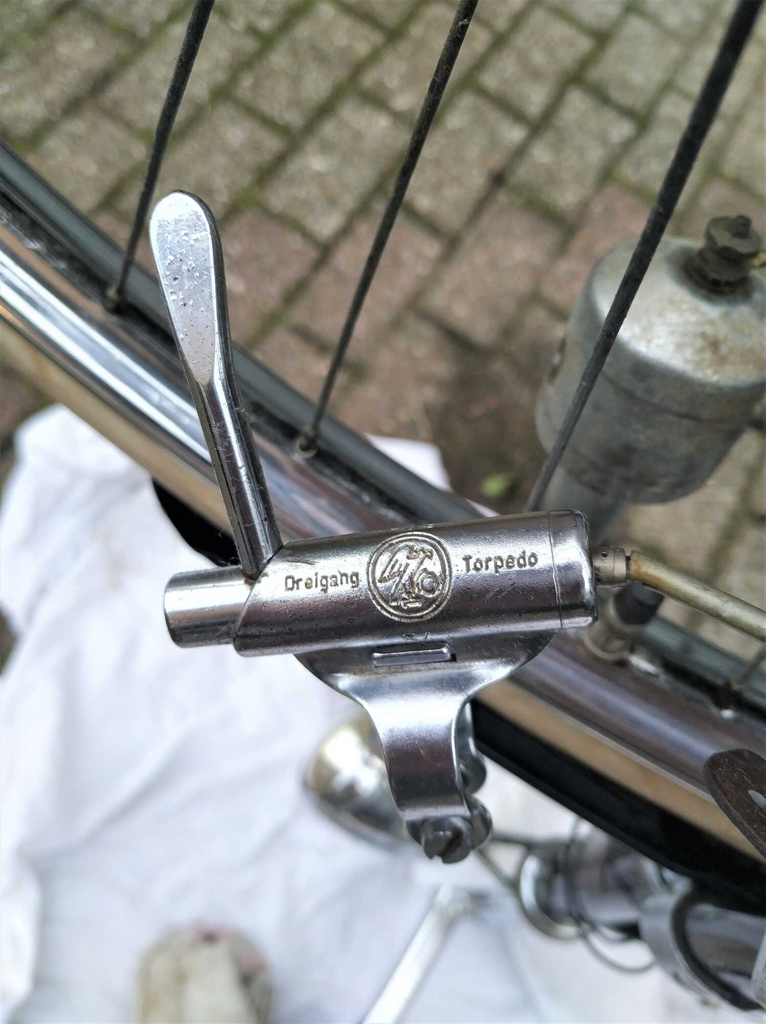 Maar het mooiste is toch wel de TORPEDO Dreigang-Freilauf Nabe. Een stalen mechanisch kunstwerk van ongekende kwaliteit. 1730 gr. schoon aan de haak! Wat loopt dat soepeltjes!