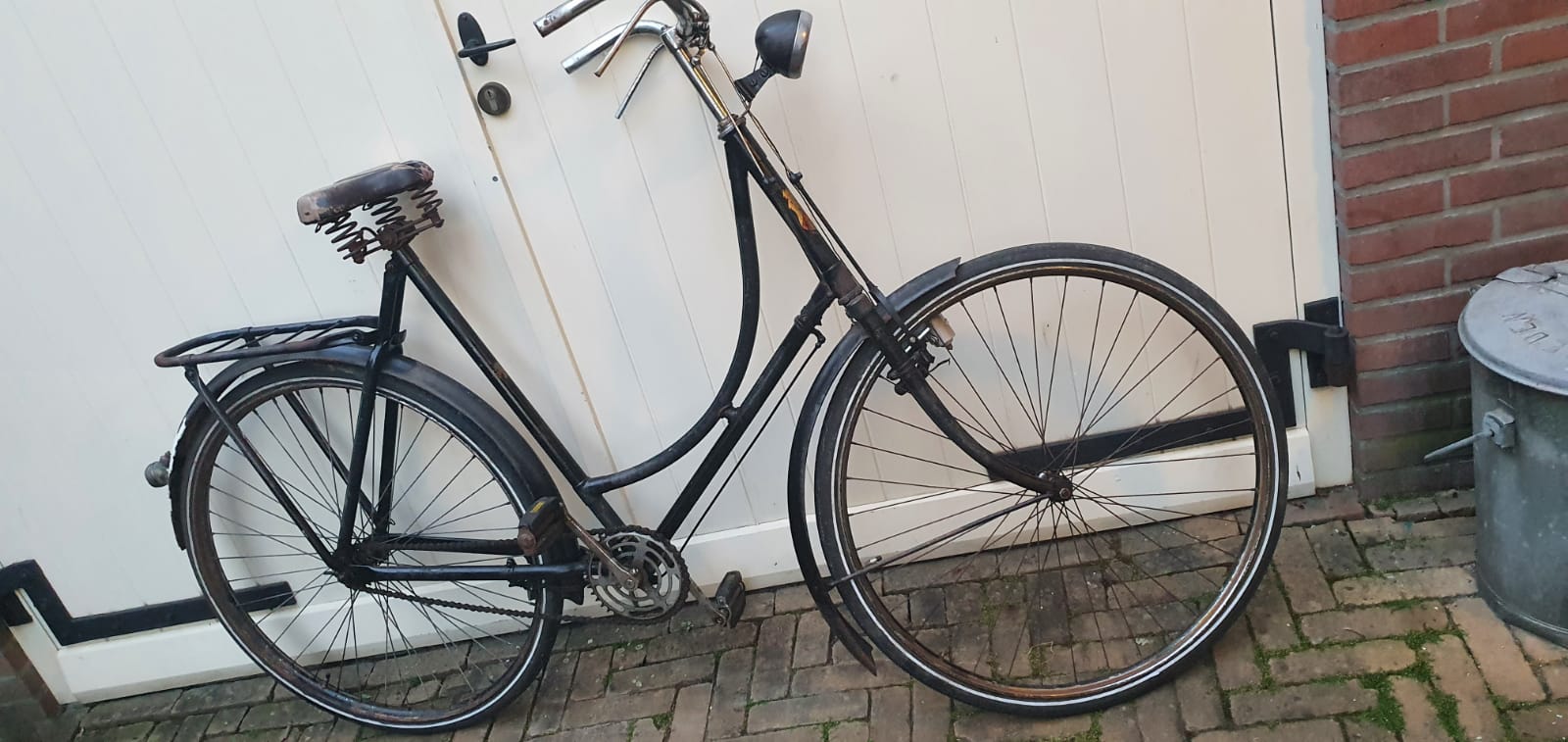 Jasper, oke dank voor het bevestigen. Ben niet zo in Fongers thuis. Vanavond gratis afhalen, dus maar gedaan. Alles mag natuurlijk wel uit elkaar en er mist het een en ander maar toch leuk. Waarschijnlijk terug restaureren naar het voor dynamo tijdperk? Carbidlamp op de lamphaak of zou de lamp toch origineel zijn, leek mij te jong?