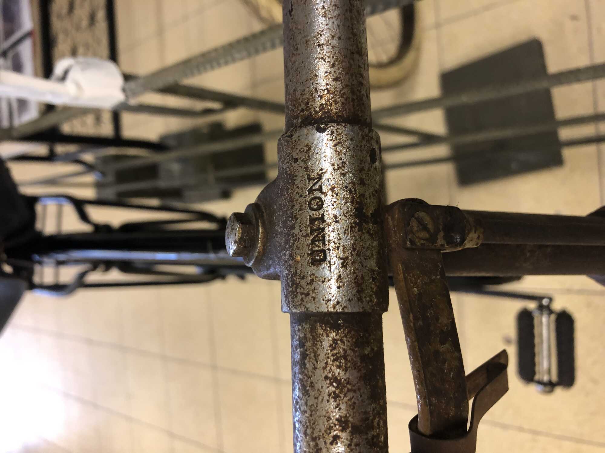 1935-1936? Helaas geen remnaaf met een duidelijk bouwjaar. Ook denk ik dat het kenmerkende UNION letter-kettingwiel ooit vervangen is. Of misschien nooit gemonteerd geweest wegens kostenbesparing…