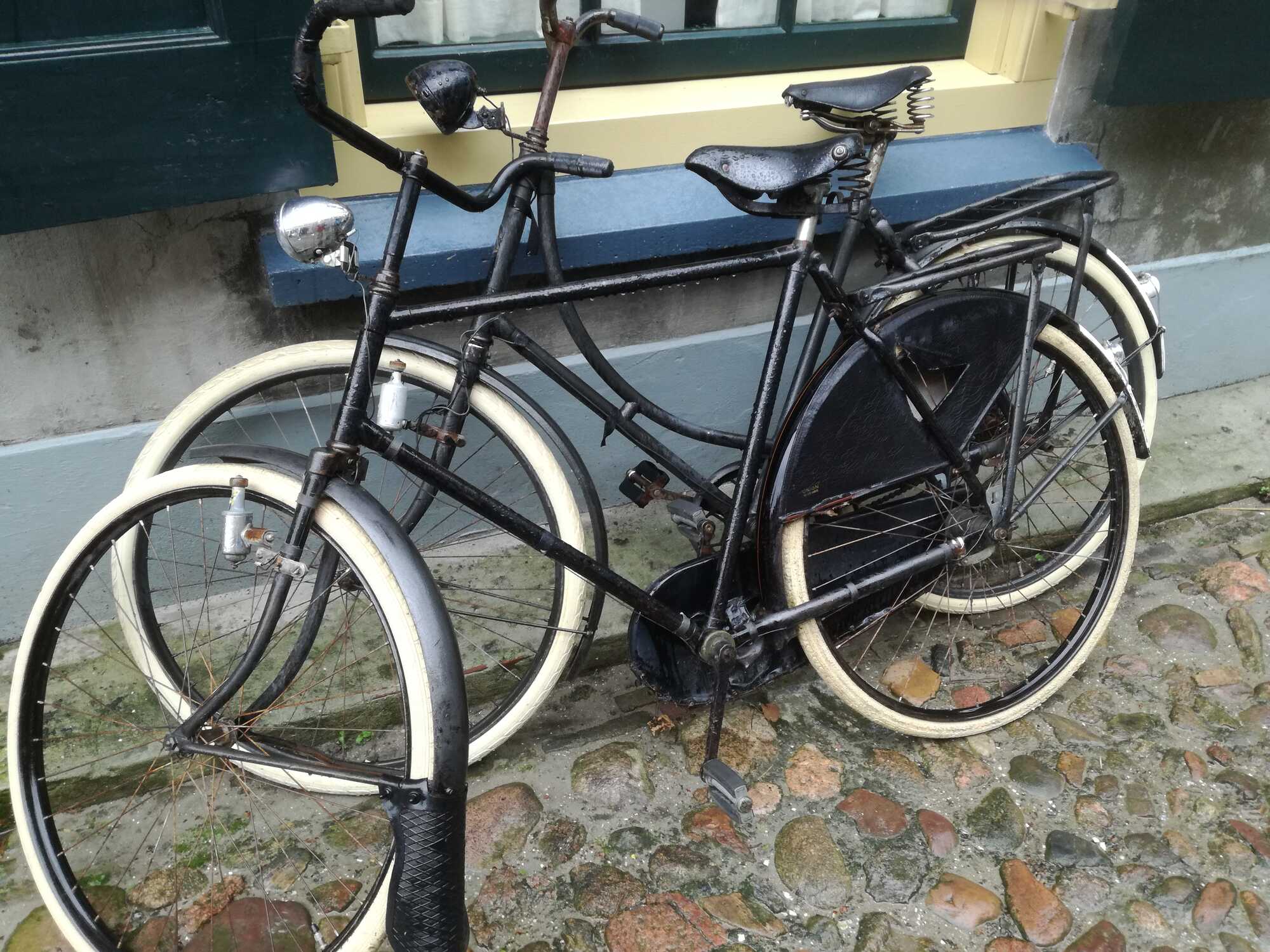 Altijd leuk om van die oude rijwielen ergens te zien staan, Ook al is het voor decoratie