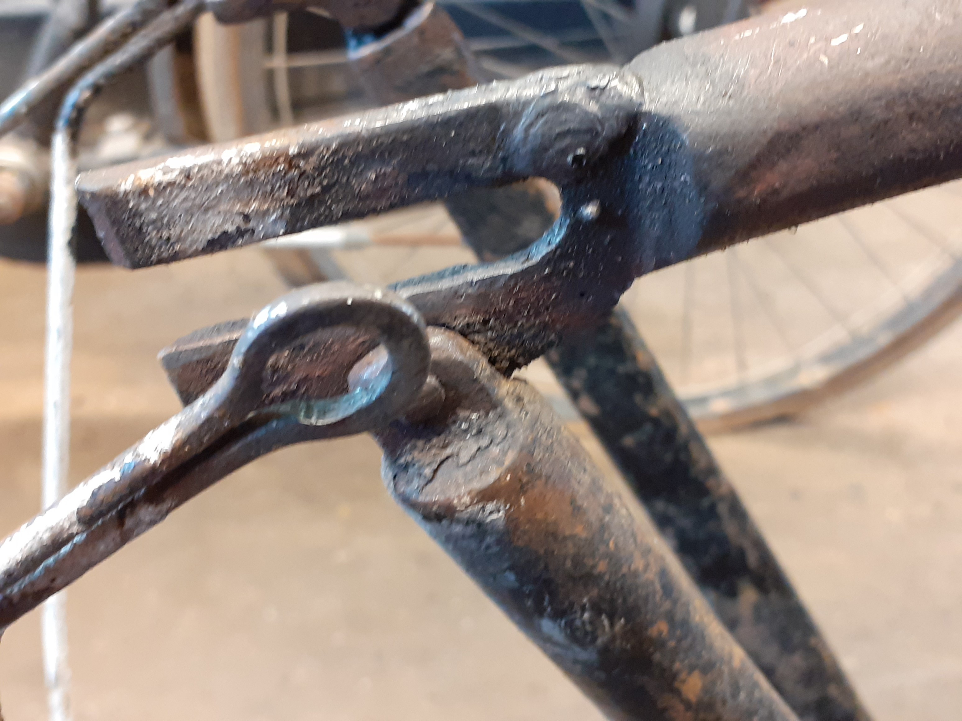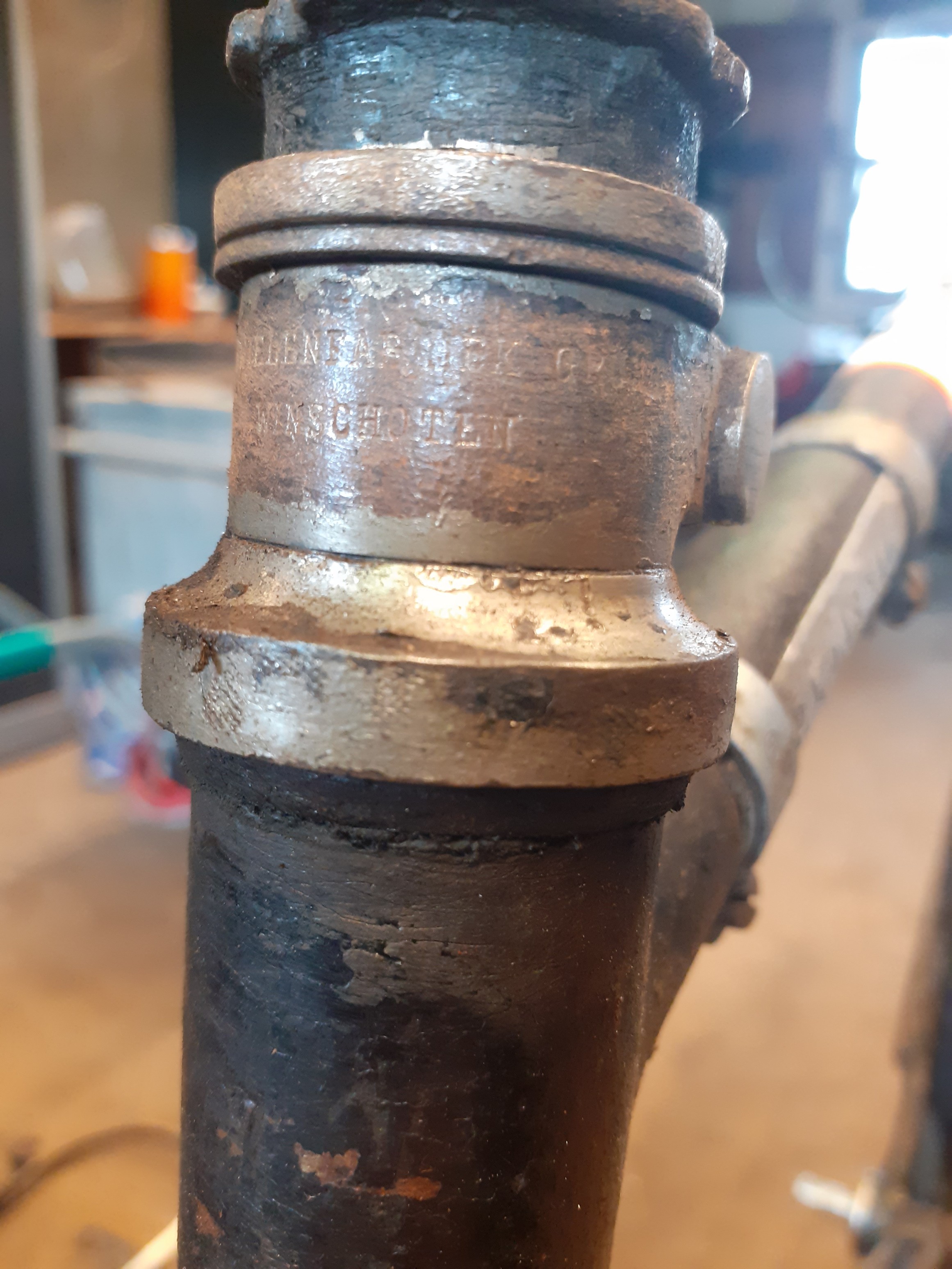 Deze Gruno hebben we gedateerd ( voorlopig) op 1922. Dit een de hand van de F&S voornaaf waar 22 op staat. Toch zijn er enkele twijfels ..Onder andere de dubbele spatbordstangen en de F&S naaf ( is meestal van Gruno) Het is een " nummer 7 " staat in het balhoofd geslagen . Er zijn nog een paar oude Gruno's , hebben die ook deze code op de achterpadden? Dit zijn zo ongeveer de enigste ingeslagen codes....