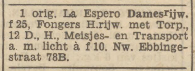 Op het forum heeft eerder een bericht over een La Espero cardanfiets gestaan. waarschijnlijk is deze damesfiets van dezelfde fabrikant of grossier.