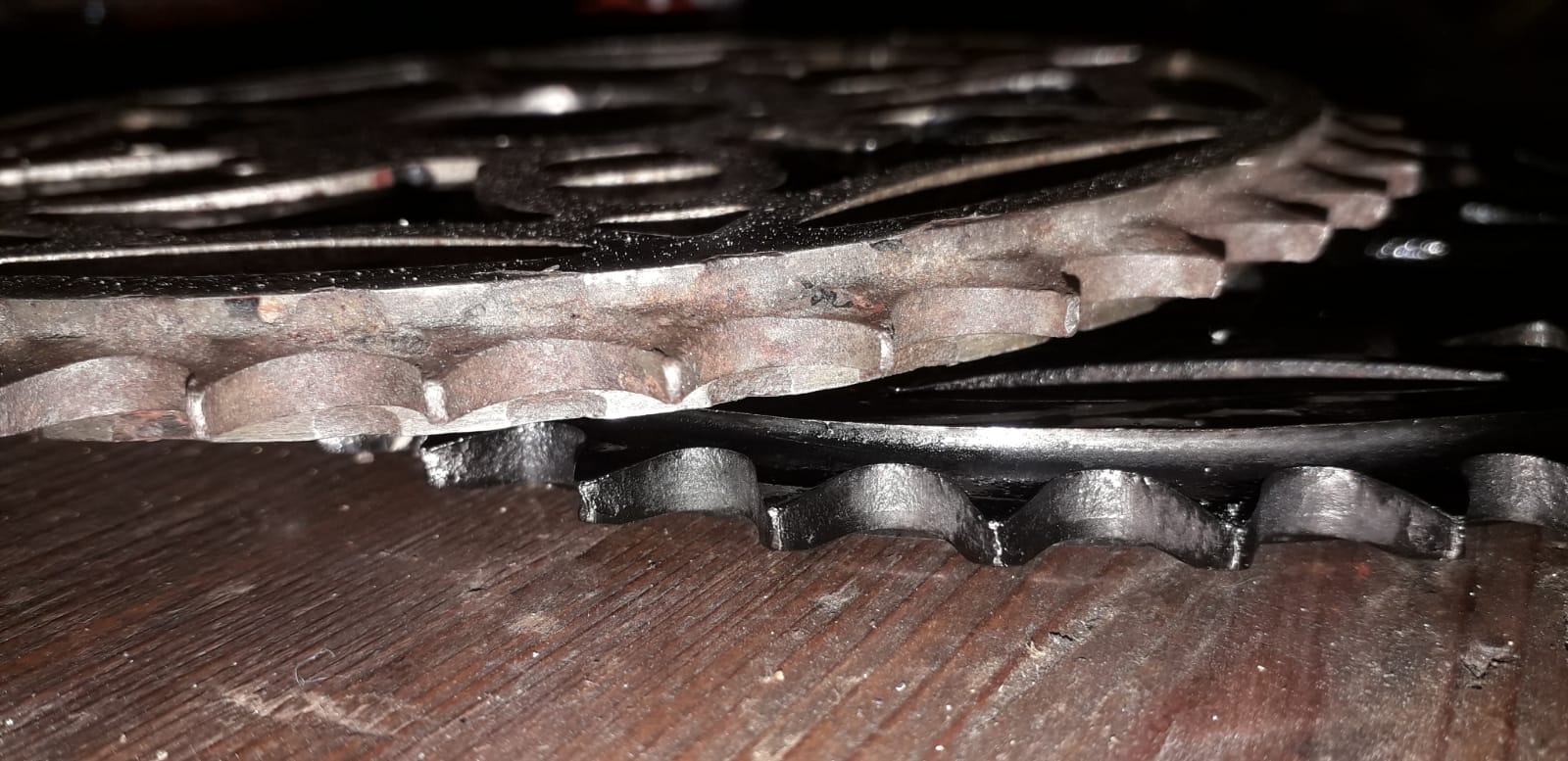 de bovenste van de 2 lijkt een stadsfiets maar is het niet hij is scheef afgesleten door slechte kettinglijn