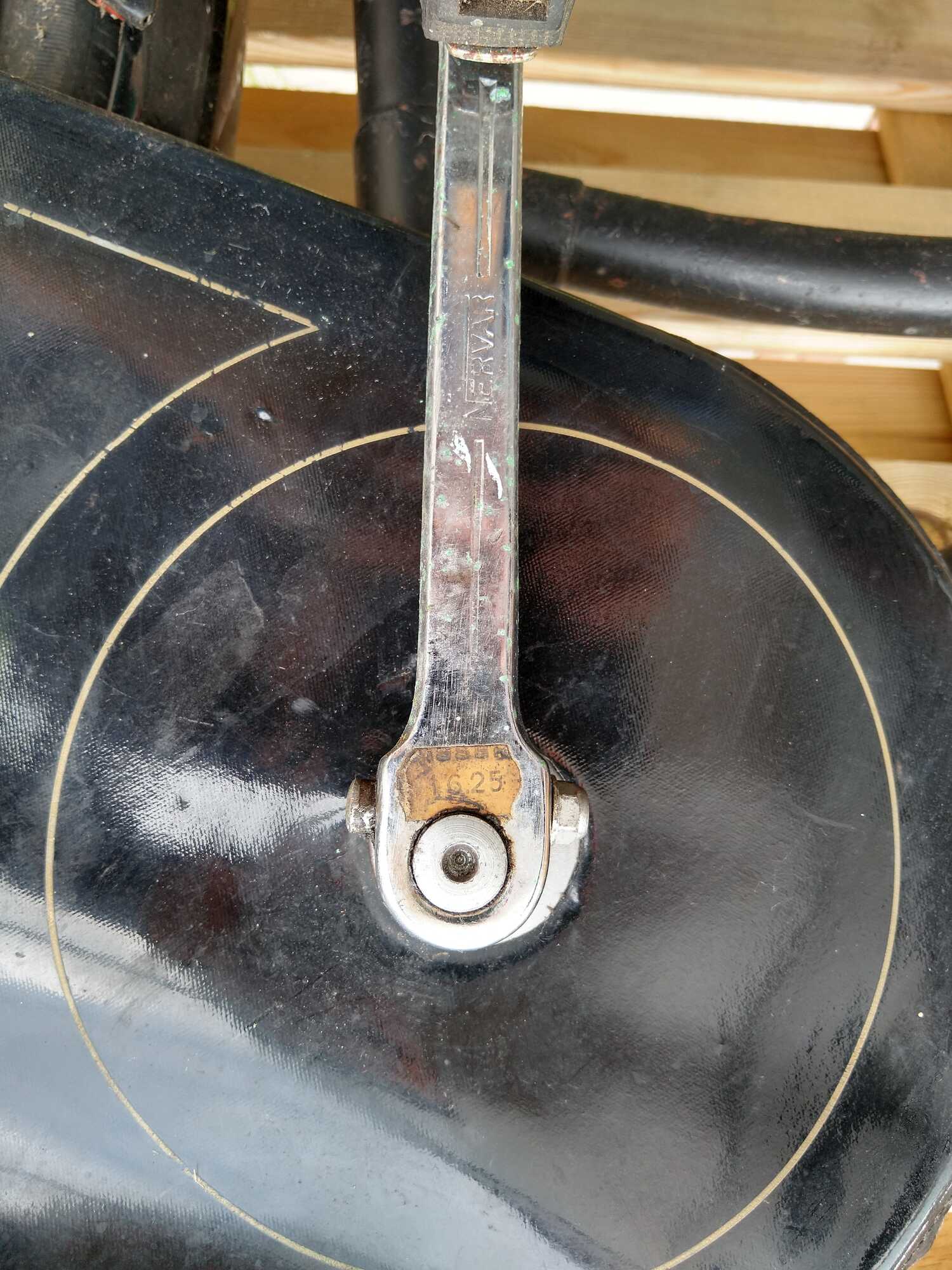 Helaas ontbrak wel het voorwiel en de linker crank, Deze waren in de loop van de tijd verdwenen