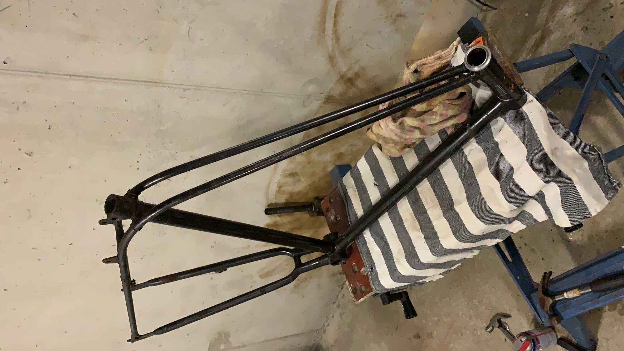 Momenteel heb ik er drie, allemaal na-oorlogs. Een herenfiets uit 1963, een damesmodel uit 1959 en het meest recente project: een Fongers Grand Sport heren uit 1960. Eigenlijk is deze zo incompleet dat het enkel een frame is met origineel voorwiel, bagagedrager en wat klein los spul. Dit wordt dus een leuk en langdurig project!